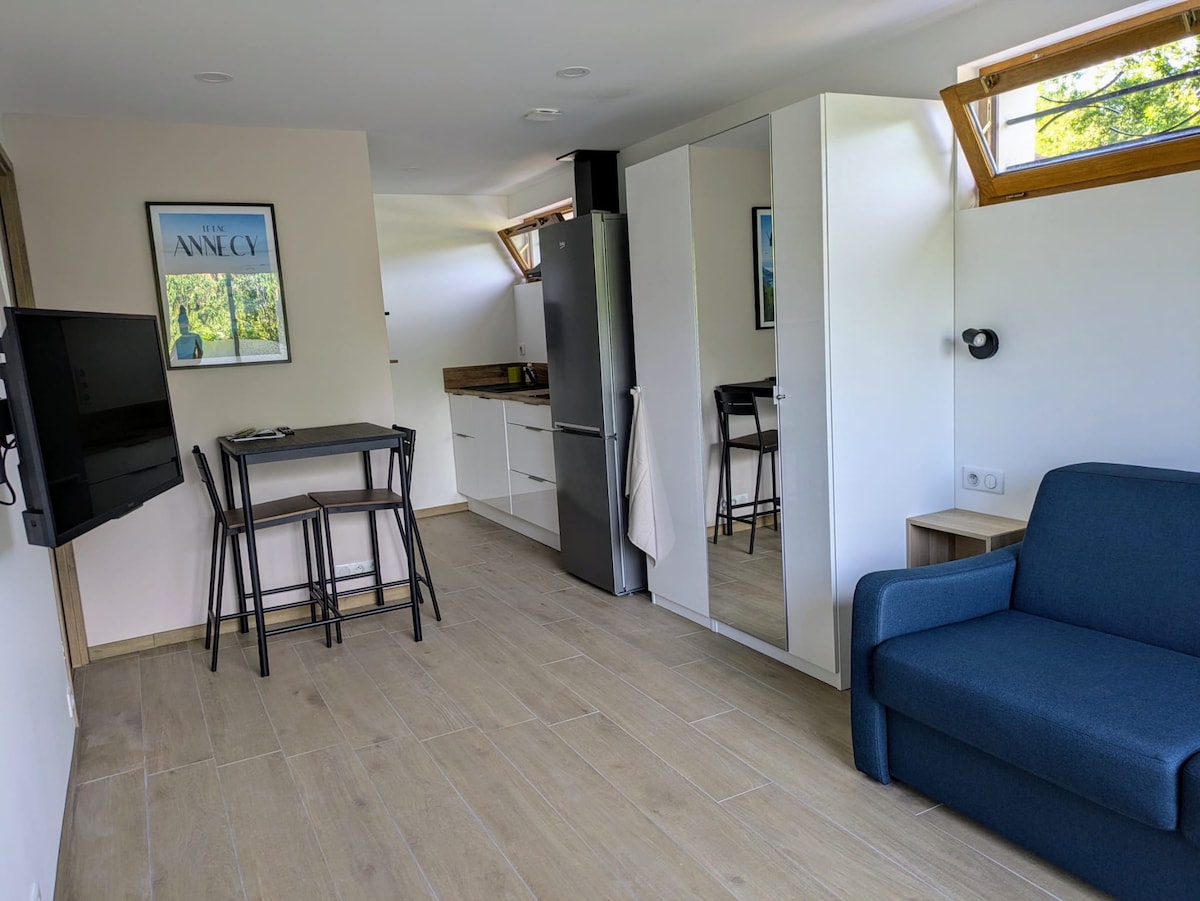 Чарівна студія, світла, повністю відремонтована, обладнана та функціональна. Приватний сад площею 80 м2 з терасою завершує помешкання. До помешкання прикріплені два приватні паркувальні місця. Квартира розташована в 6 хвилинах ходьби від озера, в 20 хвилинах на велосипеді від історичного центру Аннесі (велосипедна доріжка 300 м від помешкання). Доступно від залізничного вокзалу на автобусі, всі зручності розташовані в декількох хвилинах ходьби, автомобіль не потрібен. Ідеальна база для відкриття Аннесі та його околиць.