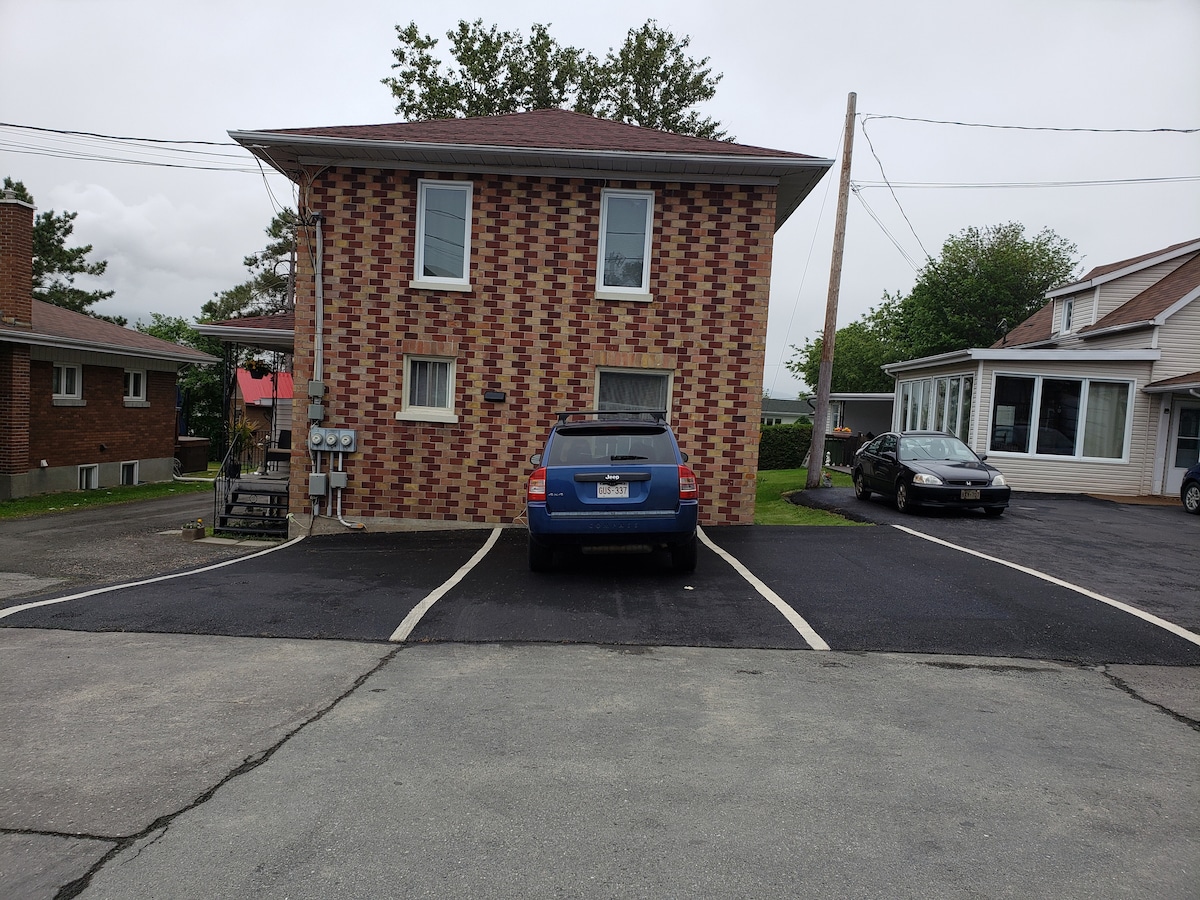Ми пропонуємо все, щоб ви почувалися як вдома. Ми також дозволяємо перебування з домашніми тваринами. Насолоджуйтеся власним помешканням з окремим входом, 1 спальнею (ліжко розміру King size з матрацом з підігрівом, якщо потрібно) та додатковим спальним місцем на розкладному дивані розміру Queen size. *Надувний матрац та/або надувне дитяче ліжко також доступні для додаткового спального місця (за запитом)* Повністю обладнана кухня та ванна кімната з повнорозмірною пральною машиною/сушаркою. П’ять хвилин до перетину кордону з Мен, США (Форт-Кент). Поруч із гірськолижними курортами (5 хвилин) та мальовничими снігохідними трасами.