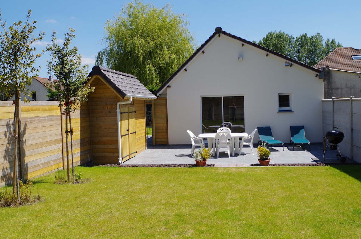 Самостійне помешкання площею 60 м2. 2 спальні, обладнані двома односпальними ліжками. Кухня відкрита для вітальні, обладнана посудомийною машиною, пральною машиною,пелетною плитою, телевізором Wi-Fi. Ми надаємо постільну білизну та рушники для душу. Приватна відкрита парковка. Барбекю на території, садові меблі, парасолька, засмага, земля приватне помешкання площею 400 м2, розташоване між Montreuil Le Touquet і Berck У 10 хвилинах від супермаркетів