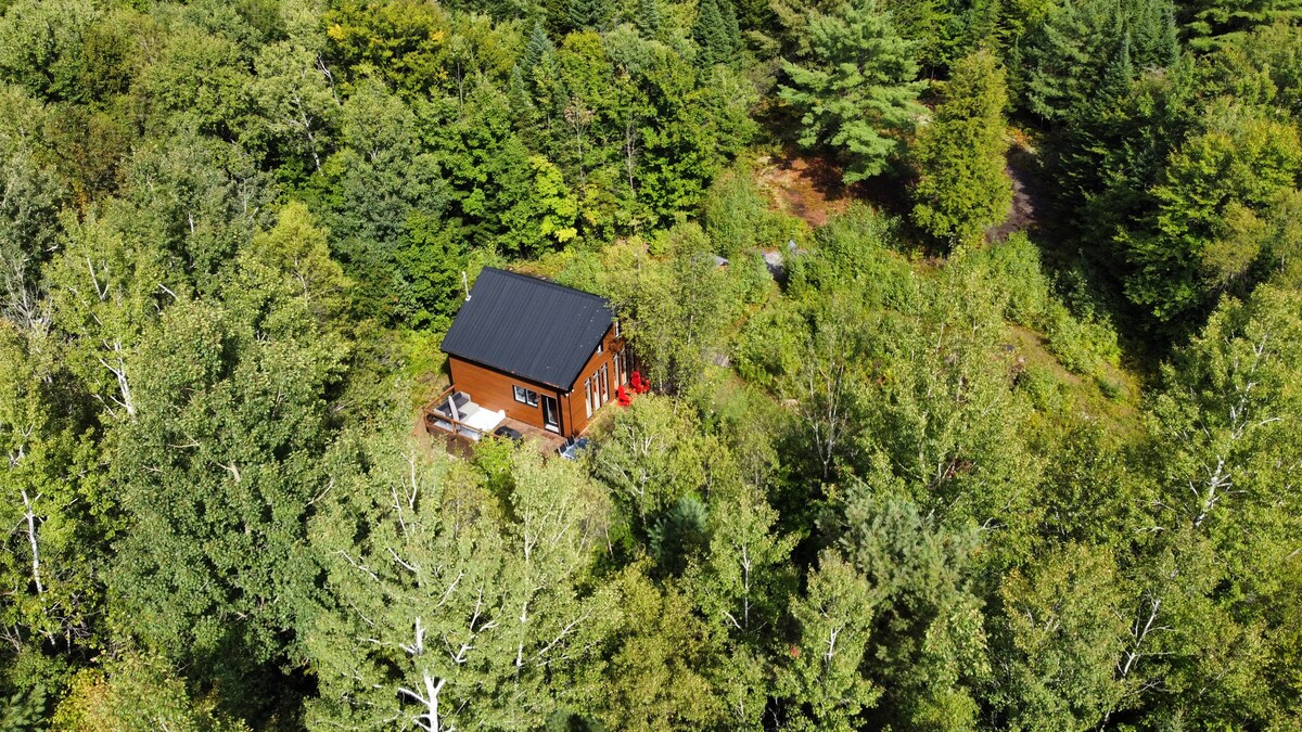 Наше скандинавське лісове шале ідеально підходить для проведення часу в парі (або з дитиною) або для роботи (з високошвидкісним Wi-Fi). Дерев 'яний інтер' єр теплий і затишний. З повноцінних вікон відкривається приголомшливий вид на лісову долину. Кухня відкритого типу та вітальня тримають вас у розмові під час приготування їжі. Якщо ви віддаєте перевагу готувати на вулиці, є місце для багаття з грилем і обіднім столом на відкритому повітрі. Всього в 70 хвилинах їзди від Монреаля. Озеро знаходиться в 25 хвилинах ходьби, якщо припаркуватися неподалік.