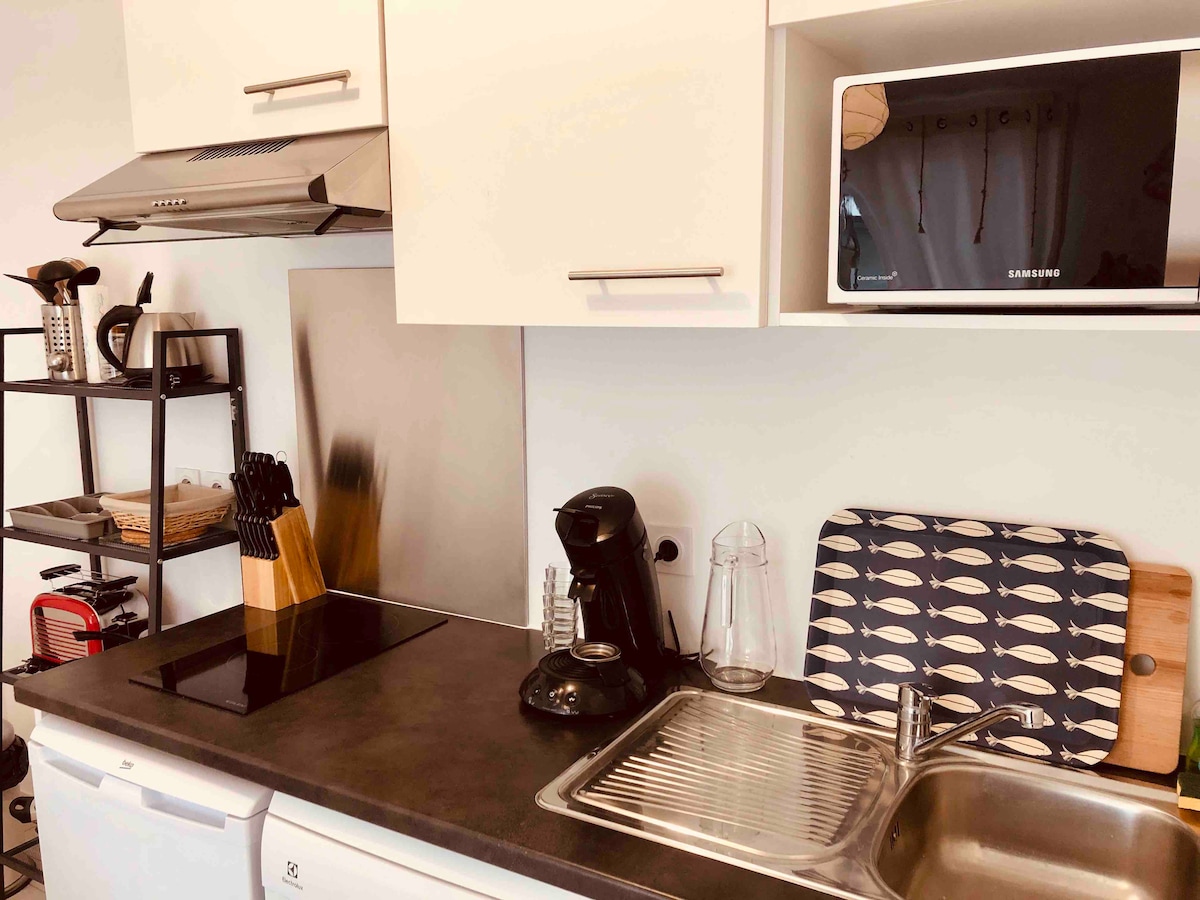 Квартира на поверсі в саду площею 25 м2 з кондиціонером, повністю відремонтована з терасою з видом на море та дюни. Резиденція LA LAGUNE з прямим доступом до пляжу без дороги за 1 хвилину Зручна тераса, стіл, парасолька, планча, щоб насолоджуватися заходами сонця Резиденція захищена цифровим кодом Приватний паркінг всередині резиденції Після прибуття у вас буде вітальний набір: рушники для рук, рушник для посуду, губка, таблетки для посудомийної машини, паперові рушники тощо.