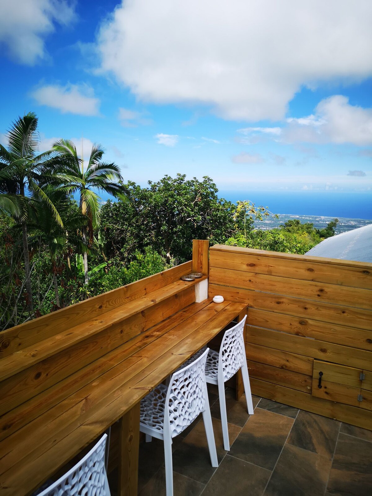Сучасний Т2 площею 55 м2 з приватною терасою, на якій можна помилуватися пейзажами інтенсивного острова з видом на 180 ° C (гірський хребет, вулкан, океан...) Насолоджуйтеся чудовим спокоєм Tapage. Вас спокусить його великий джакузі, де ви зможете відпочити після походу або вимкнути голову в зірках! Повністю незалежна квартира знаходиться на першому поверсі нашого будинку. Перед будинком є паркувальне місце.