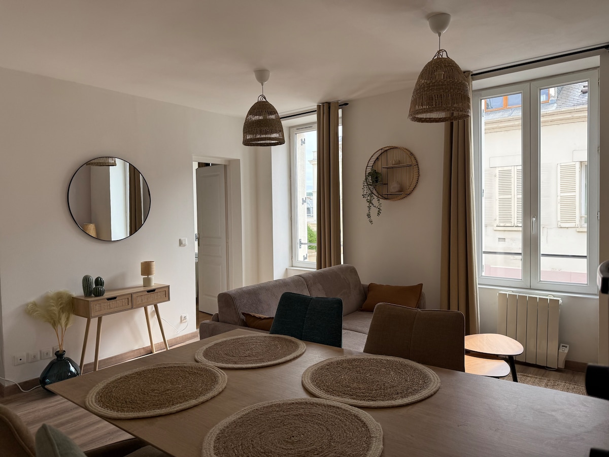 Надзвичайна квартира, центр міста Вернон, в 2 хвилинах ходьби від залізничної станції, в 10 хвилинах від Живерні, дуже тиха (у внутрішньому подвір 'ї) та дуже яскрава (з південною стороною). Квартира на 1-му поверсі без ліфта: вітальня з диваном, розкладним у двоспальне ліжко, повністю обладнана обладнана кухня (керамічна плита, кавоварка Nespresso, чайник, тостер, комбінована мікрохвильова піч/традиційна духовка), спальня з двоспальним ліжком (160 X 200 см), ванна кімната з ванною, окремий туалет. Закритий гараж у 3 хвилинах ходьби.