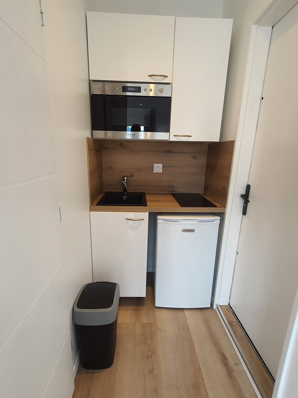 Світла студія площею 18 кв. м з балконом. Розташована на 6-му та верхньому поверсі тихого житлового комплексу, в 5 хвилинах ходьби від кампусу, громадського транспорту, магазинів та ресторану. Студія для однієї людини, що складається з обладнаної міні-кухні (холодильник із морозильною камерою, мікрохвильова піч, індукційна плита, посуд), окремої ванної кімнати (з душем, раковиною та туалетом), балкона з безперешкодним видом на гори. На балконі дозволено курити. Безкоштовне паркування внизу будівлі.