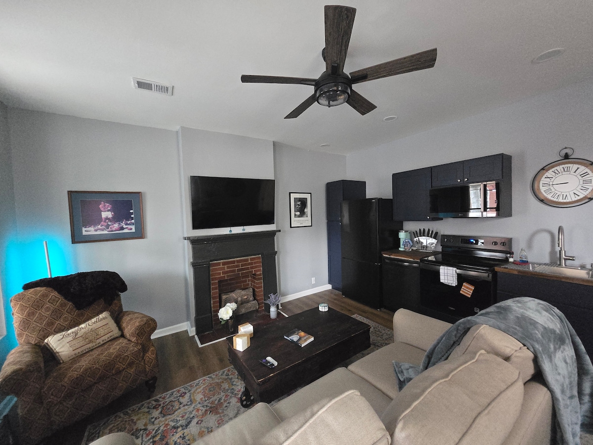 Приватний, добре освітлений вхід знаходиться в задній частині помешкання. Площа помешкання становить близько 600 кв. футів. Тут є газовий камін, 42-дюймовий HD-телевізор з Netflix та Amazon Prime. На кухні є кавоварка Keurig, конвекційна духовка, продумана скляна конфорка, мікрохвильова піч, холодильник/морозильна камера з льодом, пральна/сушильна машината великий мармуровий душ з підігрівом у душовій кімнаті. Також обладнане помешкання з очищувачем повітря з фільтром медичного класу Hepa.