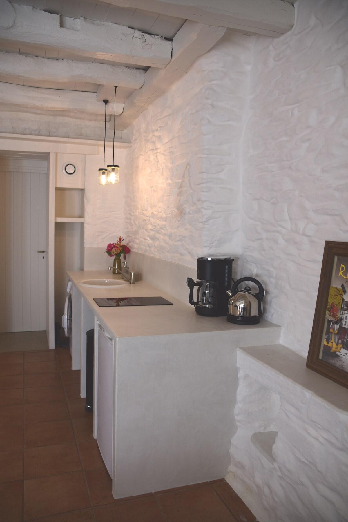 Гарна квартира площею 30 кв. м з видом на колегіальну церкву Геранда, ❤️ біля валів Проживання розташоване на 3-му поверсі (без ліфта) однієї з найстаріших будівель у валах: « Le Vieux Logis». Окремий вхід на сходах, відкрита кухня (холодильник, посудомийна машина, духовка, мікрохвильова піч, керамічні варильні поверхні, кавоварка з фільтром і кавоварка Tassimo) у вітальні. Ванна кімната з ванною та туалетом. 1 спальня з ліжком 160x200, матрац і шафа для одягу Emma. Ліжко парасолька або одноразовий обігрівач