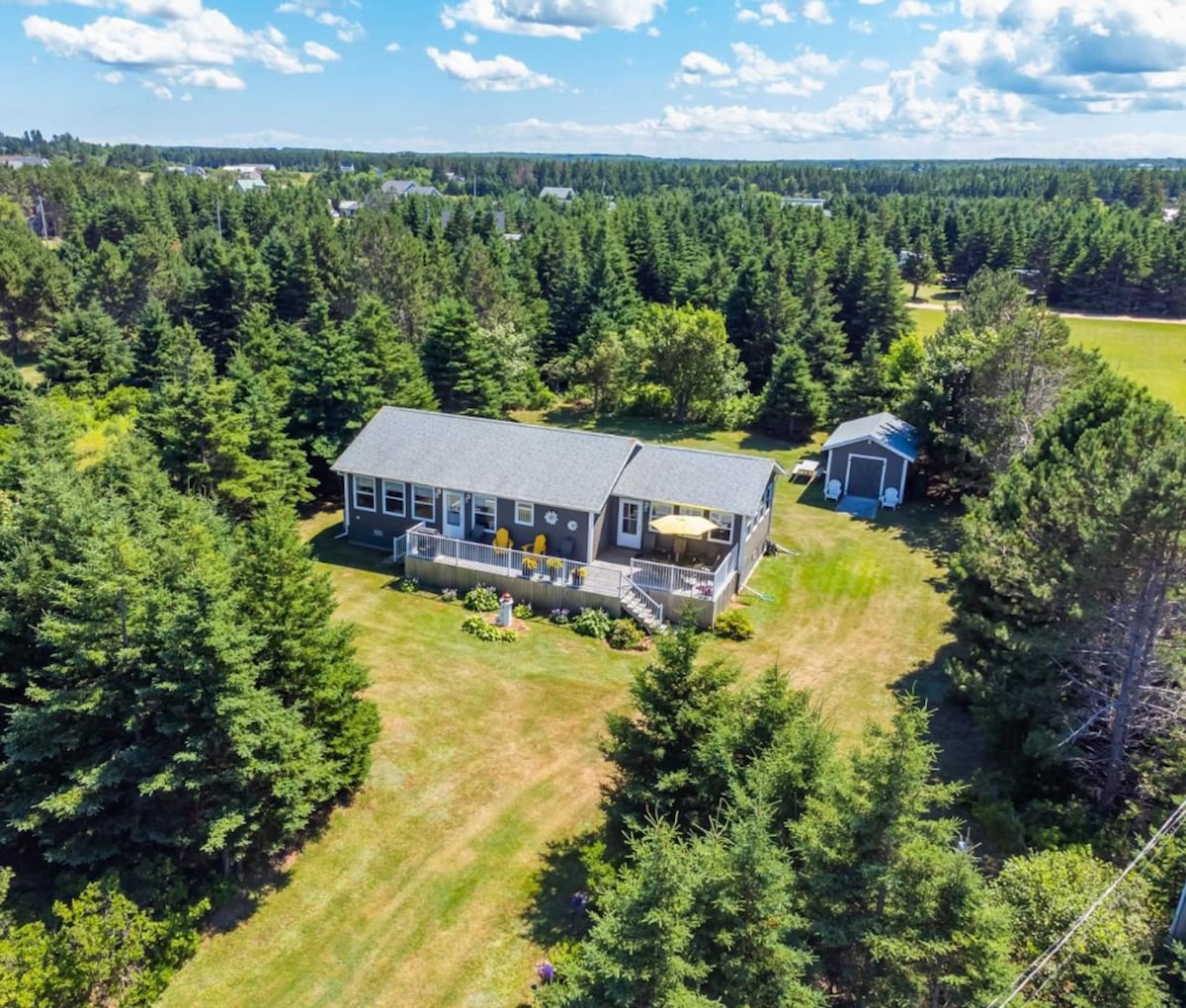 Липень і серпень, прибуття в НЕДІЛЮ. Забудьте про свої турботи в цьому комфортному та спокійному помешканні. Абсолютно новий приватний заміський будиночок із 3 спальнями, оточений деревами в підрозділі біля океану в Морелі. Послухайте океан, потягуючи ранкову каву, прогуляйтеся до пляжу світового класу ( St. Peter's Harbour Rd Beach) і насолоджуйтеся відпочинком у нашій великій сонячній кімнаті з екраном. Прибуття в липні та серпні в неділю мінімум 7 ночей... Мінімум 3 ночі поза сезоном, і, будь ласка, зв 'яжіться з нами, щоб надіслати запит на бажані дати.