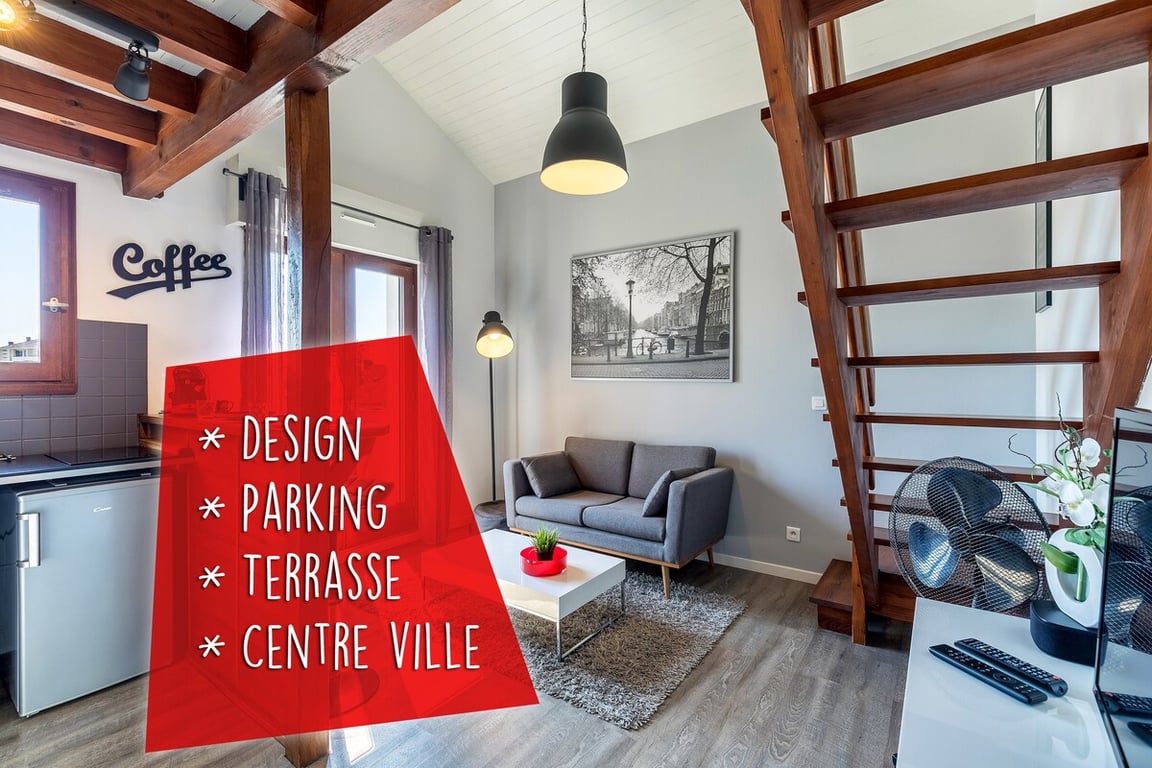 Чарівне помешкання розташоване в центрі Мон-де-Марсан, у внутрішньому дворі, поза полем зору. Для квартири зарезервовано паркувальне місце. У цій квартирі ви знайдете: - красива вітальня - Відкрита обладнана кухня. - З красивої ванної кімнати. - Спальня з гардеробною та офісною зоною Зовнішнє та приватне джакузі. У вартість входить постільна білизна, рушники, а також вітальна пляшка від 2 ночей ☺️