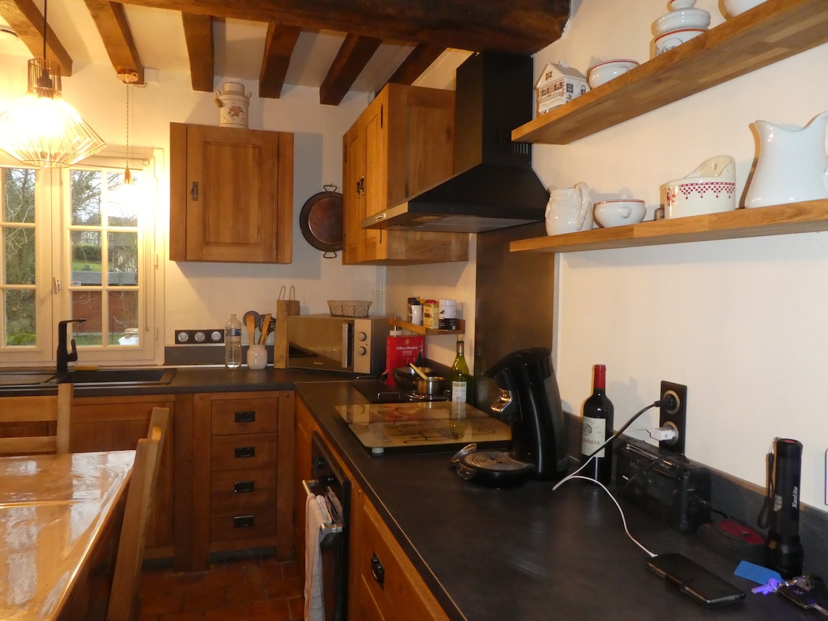 Chaumière normande traditionnelle du XVème siècle à colombages, couverte en chaume, en excellent état, disposant de 9 couchages et de 5 salles de douche dont une avec baignoire. Grandes cheminées d'époque. Grand terrain (plus d’un hectare) et vue exceptionnelle sur le Marais Vernier Piscine (10 m sur 4,5 m), avec toit amovible Terrain de boules Grand trampoline 5 vélos à disposition Prise de recharge pour voiture électrique (gratuit) A 170 km de Paris A 20 km de Honfleur