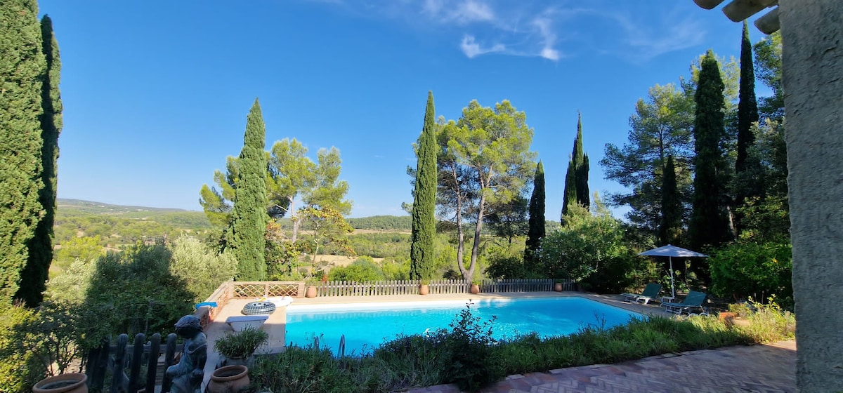 Окремий будинок з приватним доступом, нижче будинку власників. Площа помешкання – 100 кв. м, 2 тераси (включаючи 1 криту) на південь і барбекю. Доступ до безпечного басейну довжиною 12,5 м без нагляду, спільного з власниками. Спокійний притулок посеред території площею понад 26 га, з видом на природу та доглядачем на місці. Ідеально підходить для відпочинку на природі, відпочинку з сім’єю, відвідування околиць, занять спортом або пошуку натхнення. НЕМАЄ WI-FI