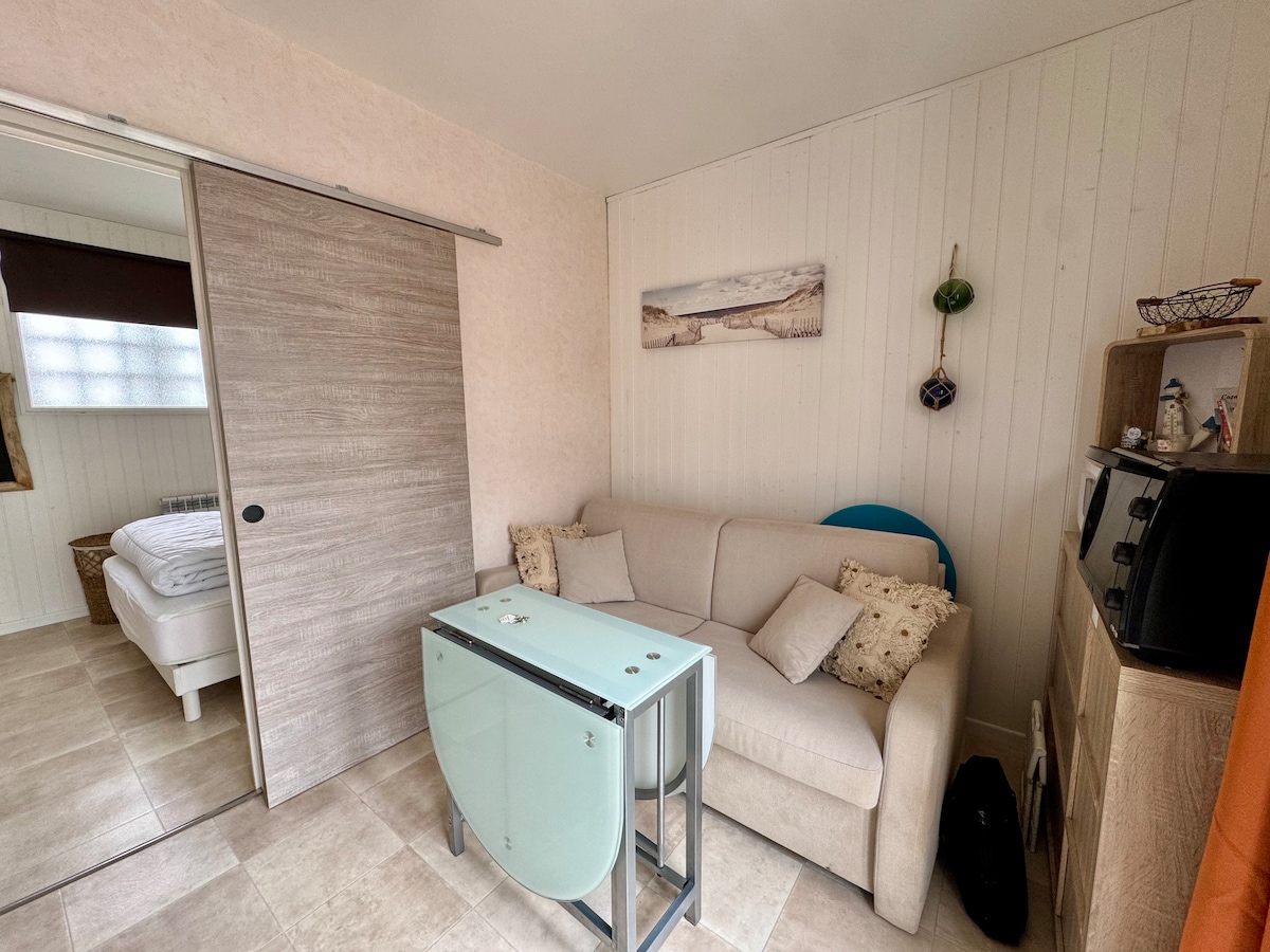 Appartement de 29m2 situé en plein centre de Saint Vincent sur Jard dans une petite résidence calme à 900m de la plage. Parking public à 100 mètres sans difficulté de stationnement même en pleine saison. L'appartement se compose d'un salon ouvert sur cuisine tout équipée une chambre avec un lit 140X190 salle de bain/WC et un canapé convertible dans le salon. Bureau de tabac et restaurant au pied de la résidence. Les draps, housses de couettes taies d’oreiller sont fournis à partir de 3 nuits.