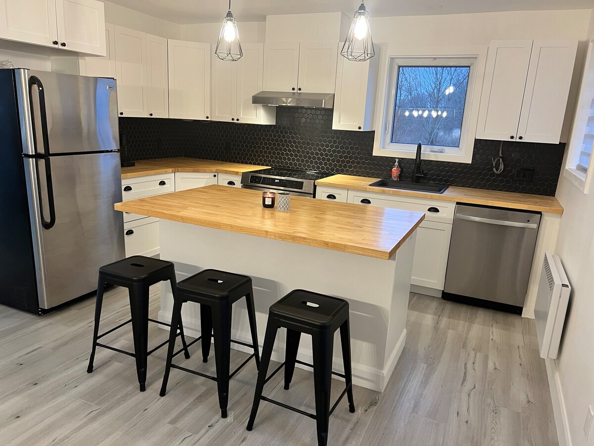 Ideal house for a relaxing stay, as a couple, with family or friends. Its location, on the banks of the Saint-Laurent River on Île Orléans, exudes a soothing and restorative serenity. CITQ license #299191 Thé house has two floors, it is comfortable, welcoming, clean, very well equipped and close to all services. Located ten minutes from the Île d'Orléans bridge, located directly on the bank of the River and with a breathtaking view of its seaway.