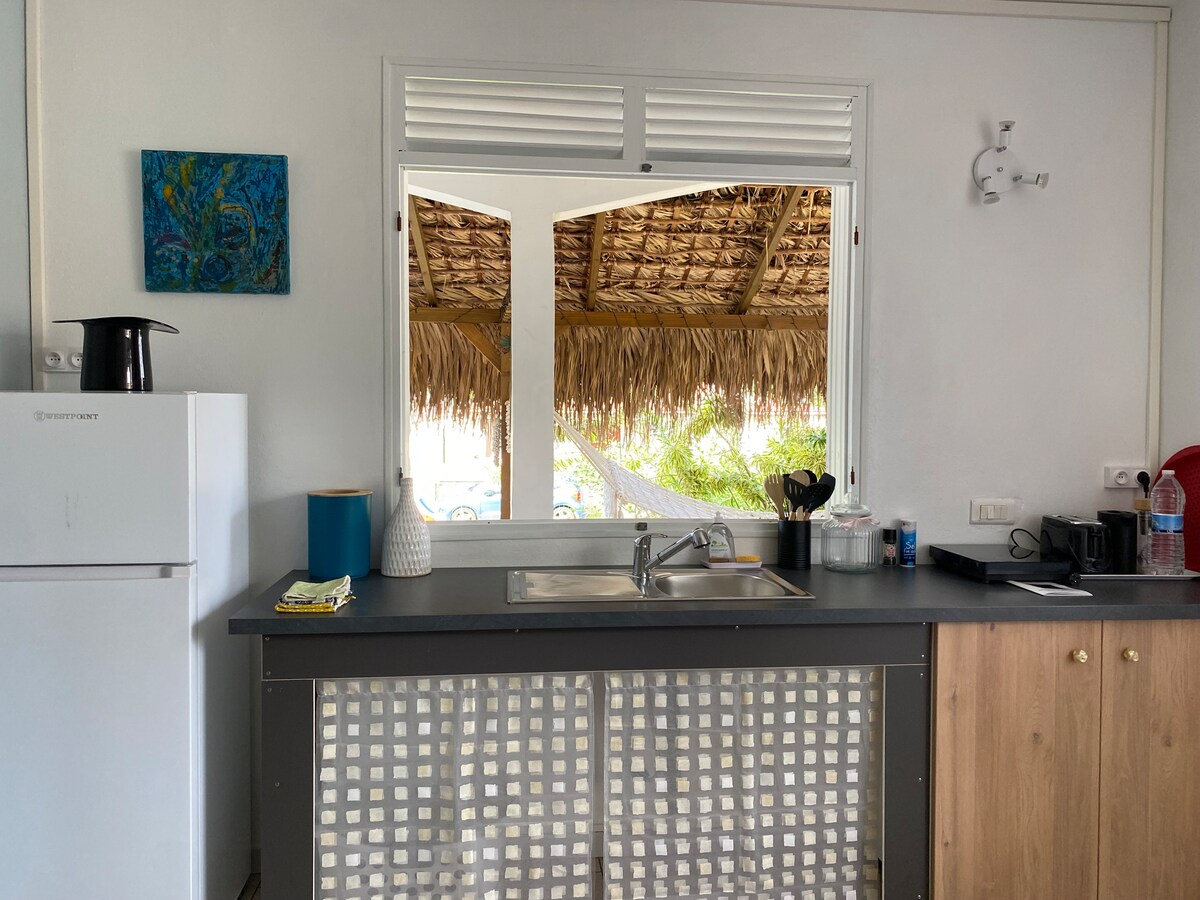 Le Gîte a un accès direct sur la piscine et est situé face à l'Océan. L'emplacement est idéal pour visiter la Guadeloupe, Il comprend: • Une pièce principale donnant sur la piscine et la vue mer : Cuisine équipée + Wifi + Lave Linge • Une salle de bain double vasque+WC séparé. . Une chambre climatisée avec un lit 2 places et rangements . Un coin nuit climatisée avec un lit 2 places et rangements. . parking, Terrasse privée aux abords de la piscine . Aux abords du Gîte, un Jardin de plantes.