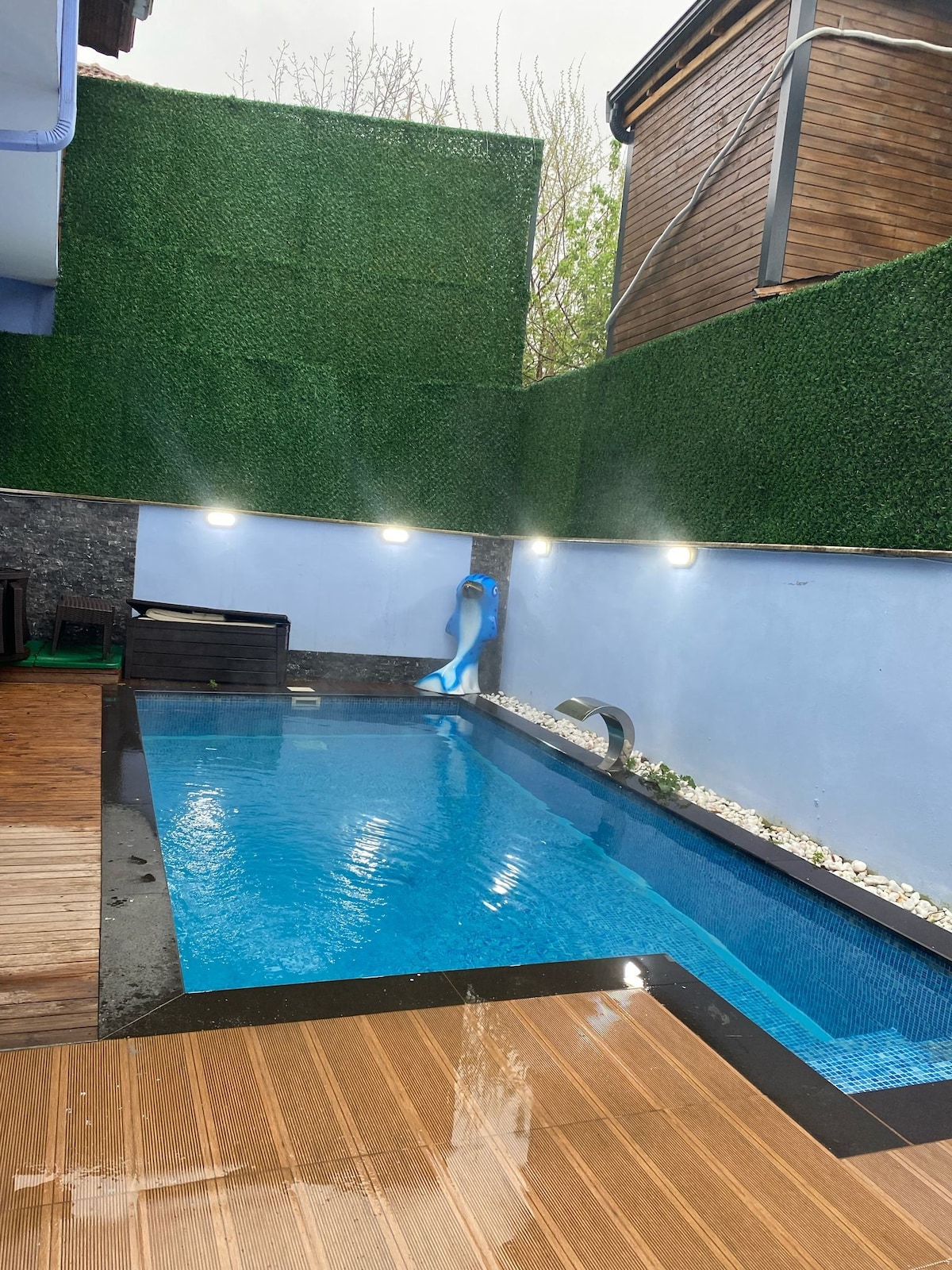 добре, у нас є окреме кам 'яне бунгало, 2 кімнати, 2 ванні кімнати в саду, у нас є 6 осіб з диванами у вітальні, ми можемо розмістити 6 осіб у саду, у нас є барбекю, вогнищева яма та криті камери, у нас є всі кухонні приналежності, які повинні бути в будинку, наш басейн 3x7 метрів повністю захищений. Наш басейн повністю захищений, я намагаюся бути членами сім' ї або групами дівчат. Дякуємо, наш басейн має підігріватися