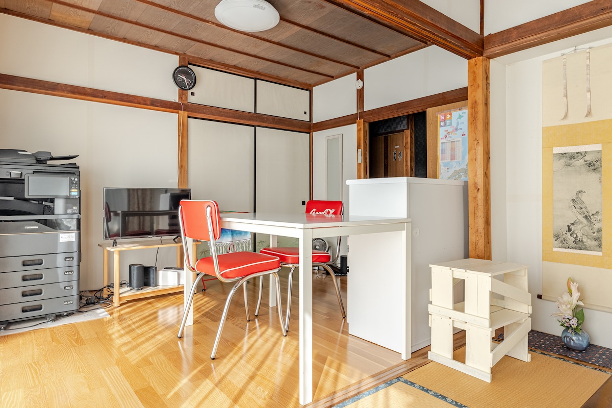 Цей будинок Mimi House Makuhari розташований в дуже зручному місці, в 1 хвилині від станції Keisei Makuhari і в 4 хвилинах від станції JR Makuhari, на півдорозі між Нарітою та Токіо. Він також знаходиться приблизно в 5 хвилинах їзди на таксі від станції Kaihin Makuhari, куди прибуває лімузин-автобус з аеропорту Наріта. Також неподалік є великий супермаркет Ito Yokado, найбільший торговий центр Японії, і парк Макухарі Кайхін з японськими садами, що робить його дуже зручним місцем, щоб дістатися до Makuhari Messe та Токійського Діснейленду. У нас також є два велосипеди, на яких гості можуть прогулятися по Макухарі. Ви можете користуватися ним під час перебування. (Обов 'язково заблокуйте його, щоб запобігти крадіжці) Крім того, у кімнаті є ліжко queen-size та японський унікальний «котацу» (стіл для сидіння влітку), тому ви можете сидіти на нижньому дивані, дивитися телевізор, їсти та почуватися комфортно. Також можна спати з котацу та витягнути «футон», щоб він міг вмістити до 3 осіб. (Якщо у вас багато багажу тощо, буде досить тісно, тому будьте обережні) Ви можете насолоджуватися комфортним перебуванням, насолоджуючись японським котацу (чабудай у спекотний сезон).