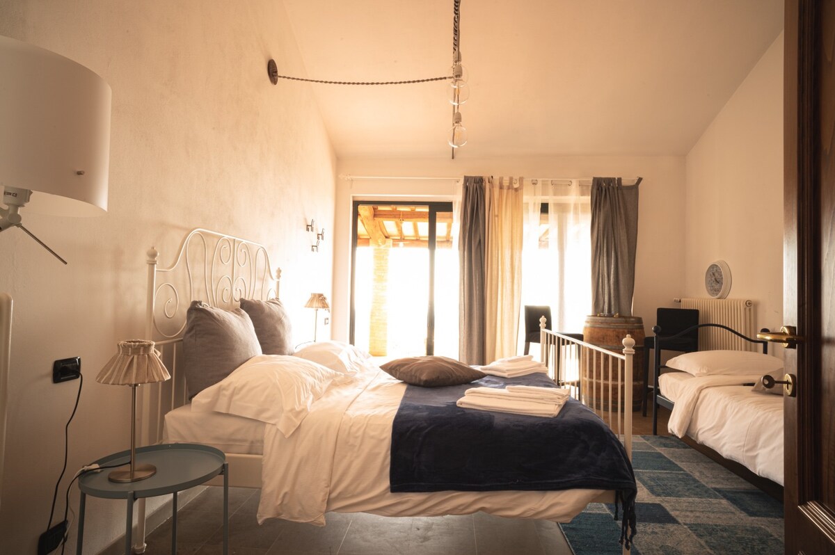 У 2023 році ми з сином Гульєльмо вирішили відновити старе ораторію церкви з 1600-х років, створивши двоповерхову квартиру: нагорі у нас є 2 спальні, обладнані кондиціонером, і 2 суміжні ванні кімнати з душем; на першому поверсі простора вітальня зі стереосистемою Доступний стіл на вулиці з чудовим видом і гарний сад за 50 метрів, де можна влаштувати приватну дегустацію вина або барбекю для всіх гостей наших 4 квартир після 19:00, якщо забронювати заздалегідь Велика безкоштовна парковка на відстані 100 м