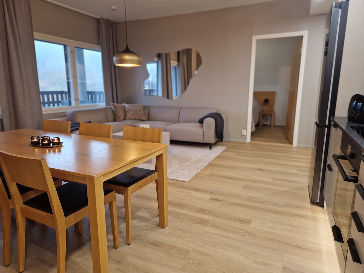Lumi Chalet — це високоякісна та винятково хороша кутова квартира в центрі села Рука, поруч із передніми схилами. Квартира була відремонтована та оформлена за високими стандартами восени 2024 року — усі поверхні, меблі та ліжка нові. Звідси можна безпосередньо дістатися до схилів, стежок, ресторанів, магазинів та послуг без автомобіля. Простора квартира з трьома спальнями пропонує приголомшливий вид на село та гори – місце, яке не можна перевершити в Руці.