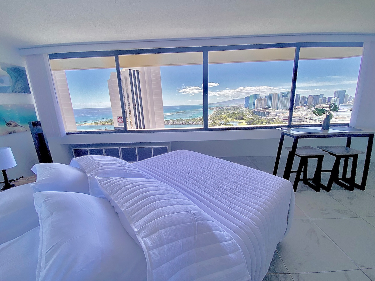 Чудова відпустка з чудовим видом на пляж Вайкікі та лагуну!! Найкраще розташування, до багатьох цікавих місць можна дістатися пішки, магазинів Ala Moana Mall/Designer та багатьох ресторанів! Насолоджуйтеся відвідуванням Оаху - тут є огляди, купання, походи, серфінг або шопінг тощо! Насолоджуйтеся феєрверками щоп 'ятниці вечорами з патіо, спонсором якого є Hilton Hawaiian Village! Басейн готелю також доступний для наших гостей. Також приймає довготермінові бронювання за спеціальними тарифами.