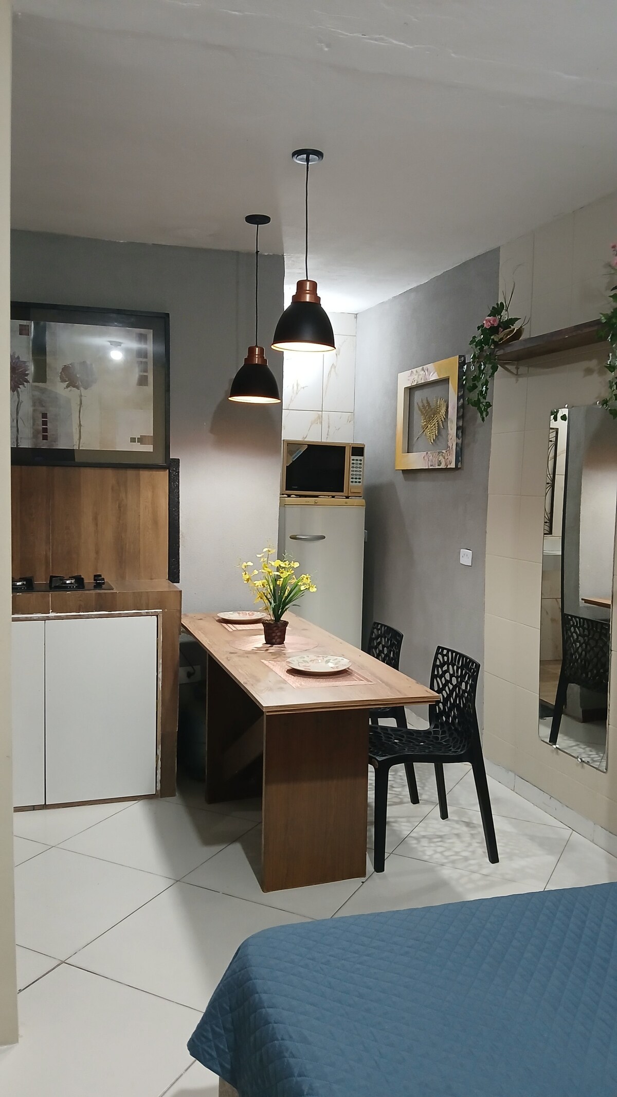 Kitnet/Loft 01 - Superior 2 andar, located in Jardim Regina neighborhood in Indaiatuba/SP Поруч із ратушею, 2 квартали екологічного парку, з аптекою, ринком, пекарнею та фудтраком на відстані 200 метрів. O Local з 'являється: 2 односпальних ліжка; 1 плита з духовкою; 1 мікрохвильова піч; Кухонне приладдя (базове); 1 гардероб; 1 стельовий вентилятор; Телевізор та WI-FI; Ванна кімната (повна та індивідуальна) Пральна машина; 1 балкон; У нас є постільна білизна (подушка, крита, простирадло) та рушник.