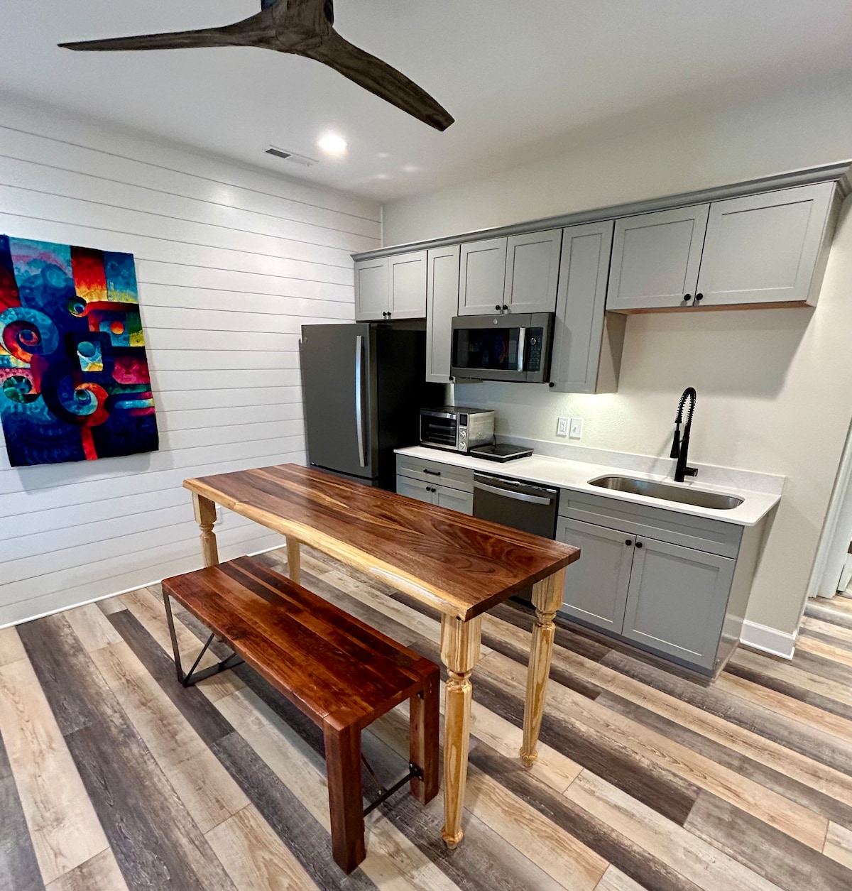 Petite Noire - нещодавно побудований розкішний міні-будинок, розташований в Кітті Хок, Північна Кароліна, всього в декількох хвилинах ходьби від пляжу, затоки та природних доріжок. Це ідеальний романтичний відпочинок, що пропонує так багато спа-салонів: º Гелевий гель розміром King size º Велика душова кабіна з двома душовими головками для опадів º 2 На відкритому повітрі мідні ванни з видом на ліс Kitty Hawk Woods º джакузі: гідромасажна ванна º Душ на відкритому повітрі з 2 душовими головками для опадів º Традиційна сауна бочки º Повна кухня º Висококласна обробка
