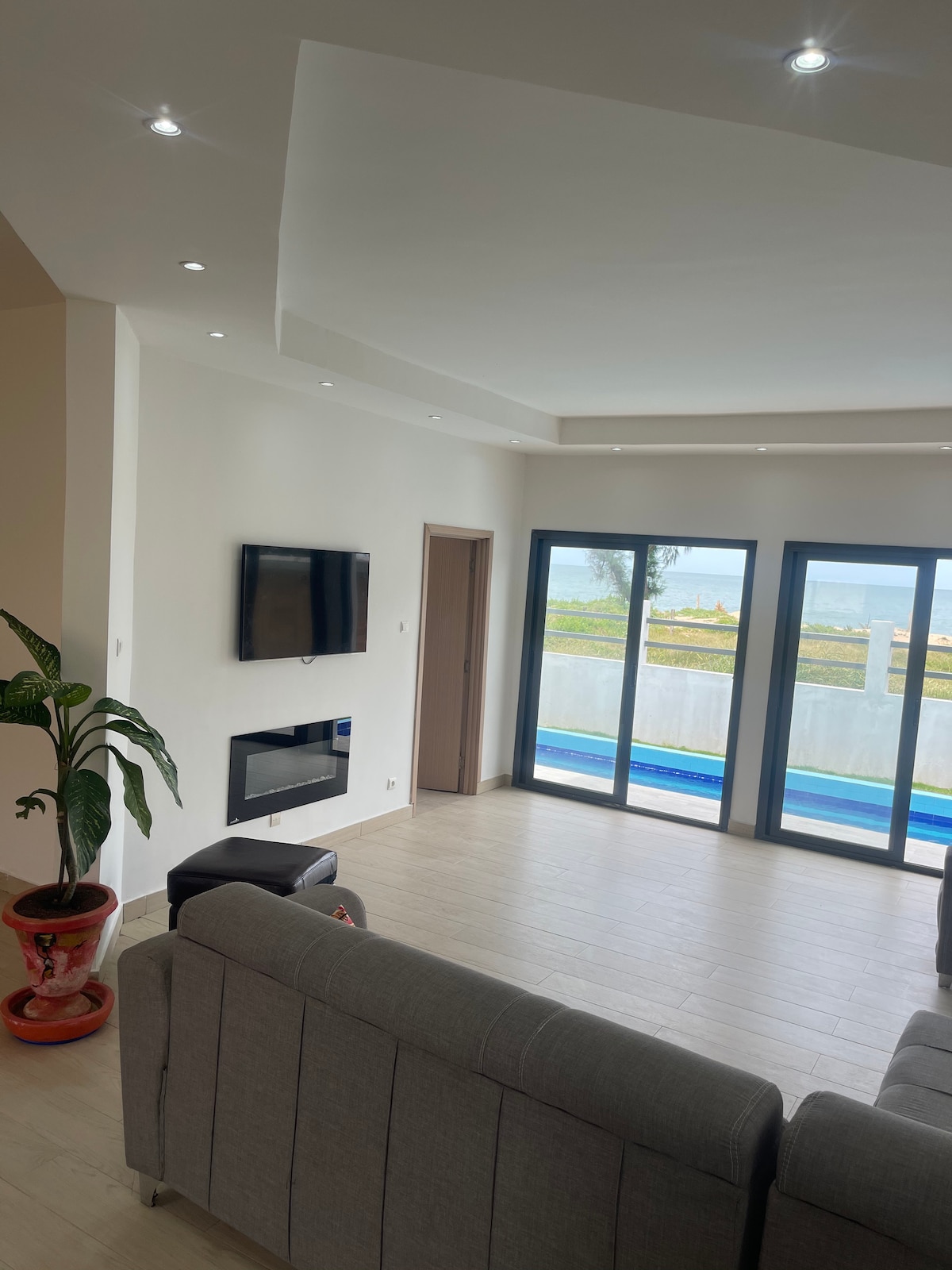 Relax in this spacious, bright & peaceful, newly renovated villa with pool, patio, and rooftop bar — perfect for families or groups. Located just 4 km from the beautiful Saly beach and 2 km from the Malicounda highway exit, offering easy access to the airport and Dakar. Security is a top priority, with guards available day and night.