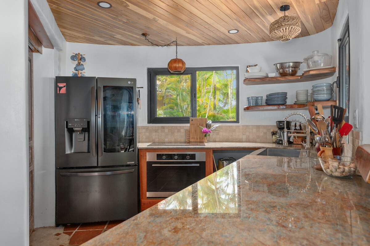 Sharing the tree-filled yard with monkeys, birds & iguanas, this light, airy, teakwood home is just 50 meters from the beach, close to the heart of Sámara. Great nature views & ocean sounds. This airy house has an open-plan kitchen - living room with many artistic, original details in local recycled woods; terrace, outdoor dining, hammock & garden. You can walk anywhere in minutes & go barefoot to the beach! NOTE: We do NOT (yet!) have AC (planned for mid-2026), but plenty of fans for air flow!