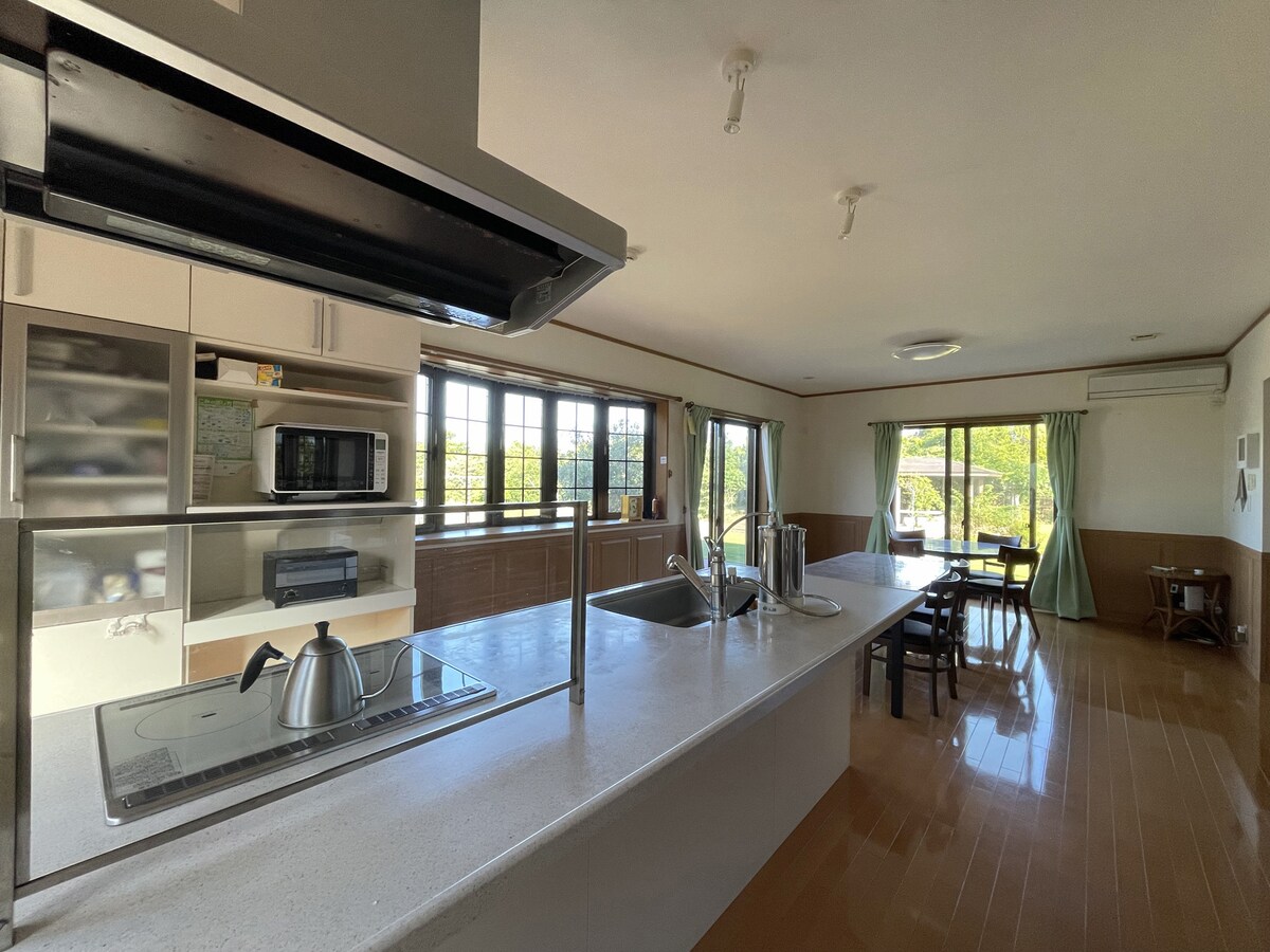 Зелений сад Куджукурі в Куджукурі, префектура Тіба. Оренда помешкань, де можна перебувати з домашніми тваринами, з трьома собаками (до двох великих собак) з собакою. Вона має площу близько 2400 квадратних метрів, цегляну піч для барбекю та окреме місце для багаття. У великому саду також є критий стіл і стільці, тому ви можете насолоджуватися іграми на відкритому повітрі. У помешканні більше трьох спалень.Вітальня також простора та зручна. Максимум 12 осіб для великих груп! Це чудове місце для активного відпочинку, зоряного неба, груп друзів і сімей. Ми будемо дуже раді бачити вас тут! ★ Собаки: платна послуга, до 3 маленьких або середніх собак, до 2 великих собак. Якщо у вас кілька собак, вам потрібно буде заплатити окремо.Зв 'яжіться з нами заздалегідь. ★ Прокат гриля (6510 єн за раз), користування місцем для багаття (3906 єн за раз) Повідомте нам заздалегідь, якщо бажаєте. ★Постільна білизна: до 8 осіб - це футони. Ви повинні надати інформацію про ★ гостя (паспорт/посвідчення особи для іноземних громадян). ★ Обов'язково ознайомтеся з правилами проживання та особливими примітками, перш ніж робити бронювання.