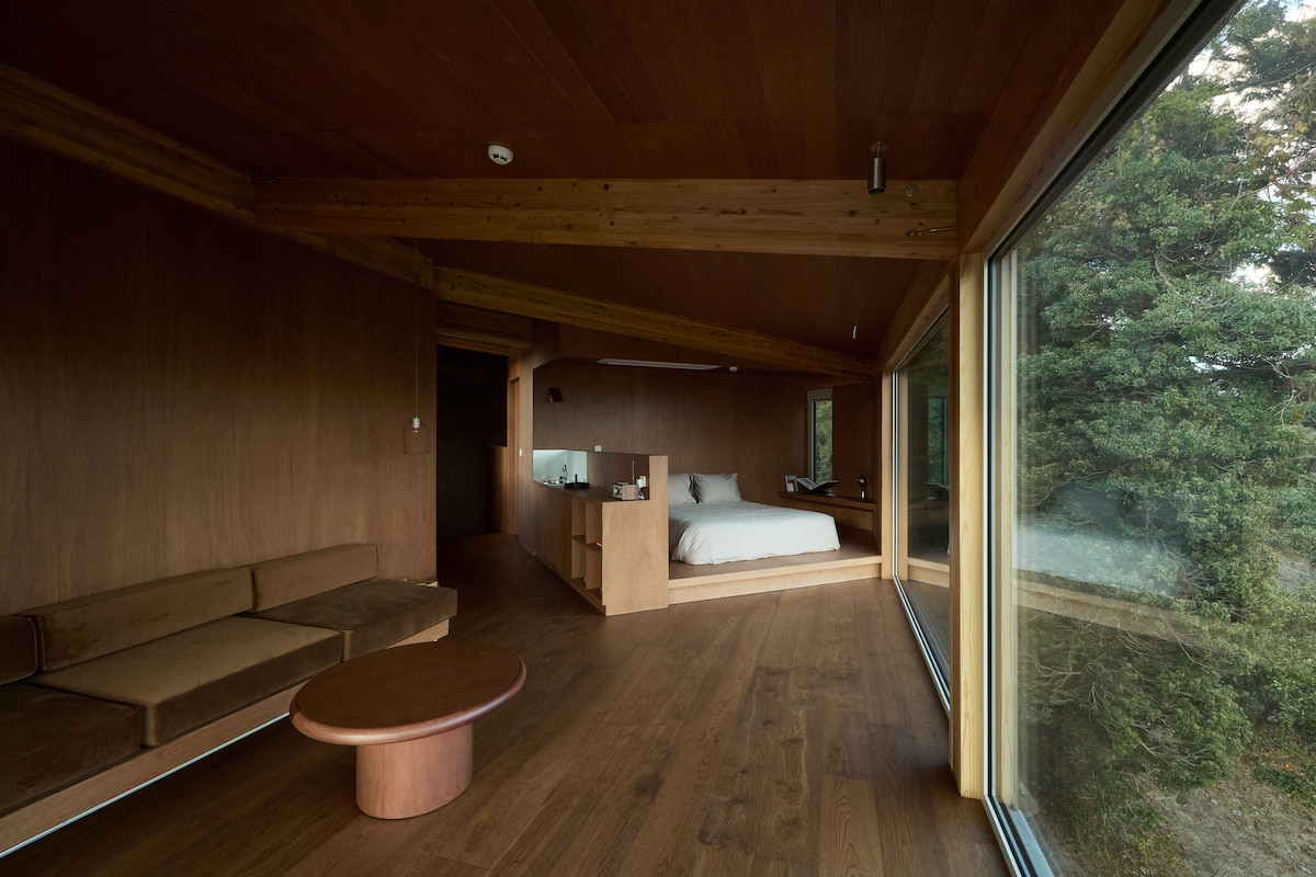 Це помешкання для мандрівників, які хочуть дослідити справжній Чеджу. Завдяки конструкції, що стирає межі між приміщенням і відкритим простором, Під час перебування ви зможете відчути зв’язок із природою, як у гірській хатині або в кемпінгу. Інтер’єр помешкання оформлено деревом і каменем Є ванна Ви можете повільно відновлюватися від втоми під час вашої подорожі. Це місце підходить для тих, хто хоче спокійно відпочити та сповільнити темп подорожі.