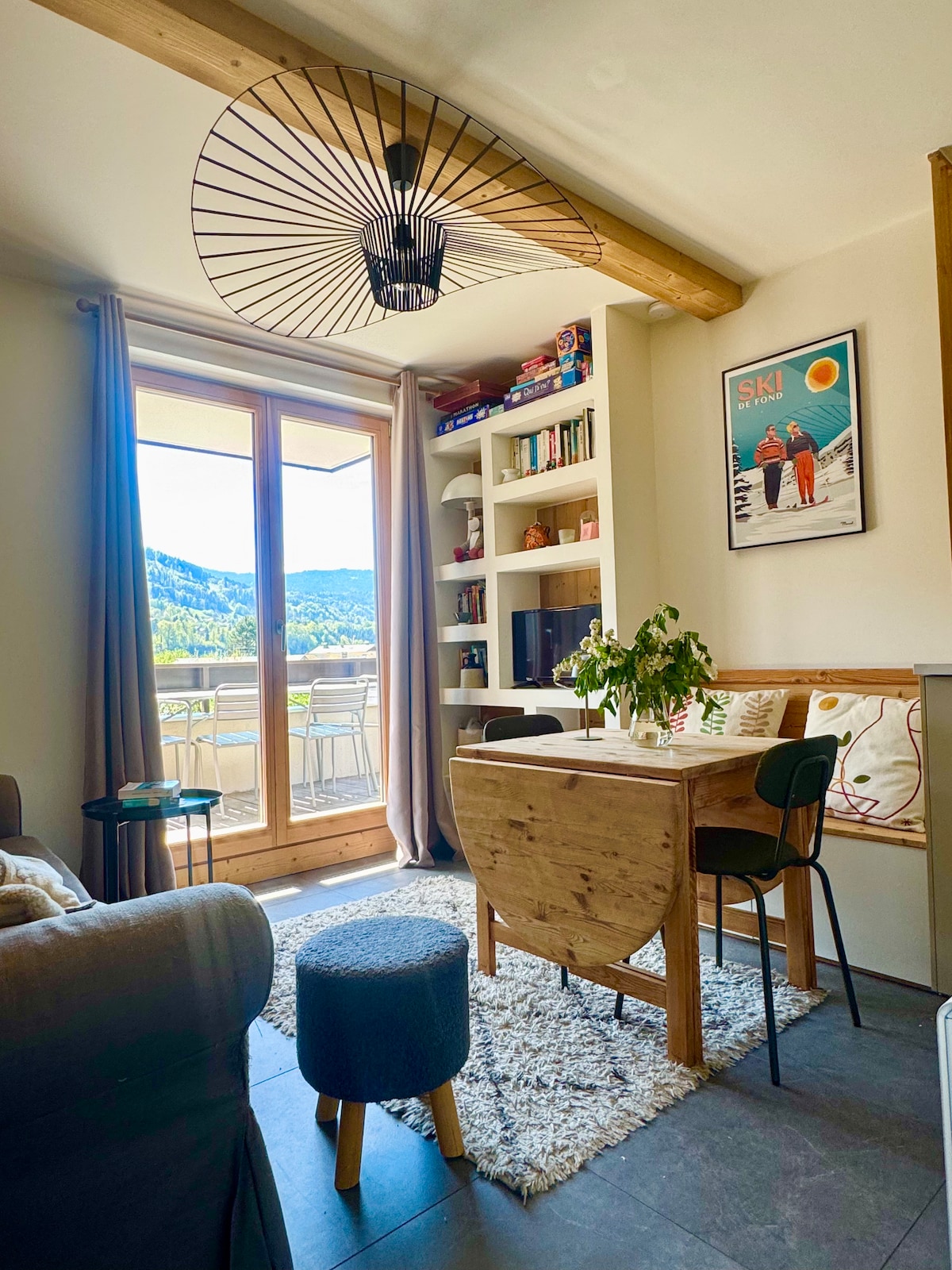Красива квартира, зроблена нами, з видом на південь з великою терасою, спільним зовнішнім простором і відкритим видом на гори. Цей спокійний будинок пропонує спокійне перебування для всієї сім 'ї. Ідеально розташовані в 15 хвилинах від гірськолижних курортів (Les Gets, Le Grand Massif, Praz de Lys), різних заходів (піші прогулянки, сходження на дерева, басейни, рафтинг, через феррату, гірський велосипед...), а також 50 хвилин від міст (Аннес, Шамоні, Женева).