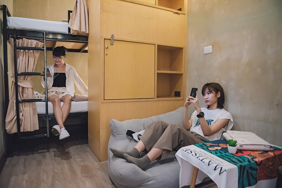 Just a 10-minute walk from BTS Phra Khanong, Cazz Hostel is right next to a 24-hour convenience store and a local Thai market. Downtown Bangkok is only 10–15 minutes away by skytrain, and the airport’s just a 25-minute drive. Hang out in our cozy common area, cook in the shared kitchen, or relax with a coffee and some cute cats at our café downstairs!