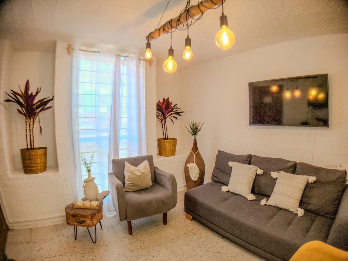 Насолоджуйтеся простотою цього тихого помешкання в центрі міста. Ми пропонуємо цілодобову охорону, спокій і приватність. Розташоване в декількох хвилинах від Тлакепаке. У 5 хвилинах від парку Сан-Рафаель. 10 хвилин до Expo Ganadera 10 хвилин від площі Fórum Tlaquepaque. 15 хвилин до центру Гвадалахари. Парковка в кондомініумі 3 телевізори Smart TV з Netflix, Prime Video зі знижкою 40% на бронювання на місяць. А якщо ви забронюєте помешкання заздалегідь, то отримаєте пропозицію зі знижкою.