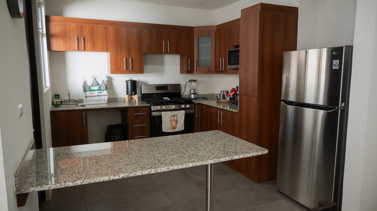 Відпочиньте в затишній квартирі з приголомшливим видом на вулкан, розташованій усього за 15 хвилин від Антигуа-Гватемала. Насолоджуйтеся спокоєм, сусідніми пам’ятками, такими як Хоббітенаго, Альтаміра та Ерс-Лодж, мальовничими пішохідними доріжками та місцями на відкритому повітрі, де можна випити кави або помилуватися заходом сонця. Ідеально підходить для віддаленої роботи завдяки високошвидкісному інтернету Starlink і комфортабельному робочому місцю. У розпорядженні гостей також повністю обладнана кухня, барбекю, гамак, приватні зони на відкритому повітрі та паркувальне місце для одного автомобіля.