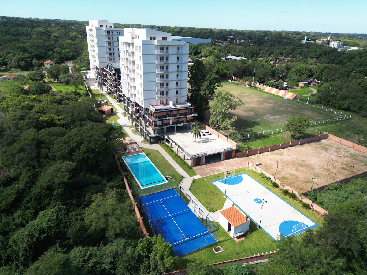 Тут ви можете спокійно відпочити або влаштувати розкішну вечірку, як забажаєте! З усіма зручностями, посеред природи, але недалеко від Сан-Бернардіно і всього в кількох кроках від Каакупе з його базилікою. Насолоджуйтеся безперешкодним видом на долину Іпакараї до горизонту столиці Асунсьона. У басейні або на терасі можна насолоджуватися днем, а потім романтичним заходом сонця. Або ви б хотіли випити келих шампанського у критому джакузі?