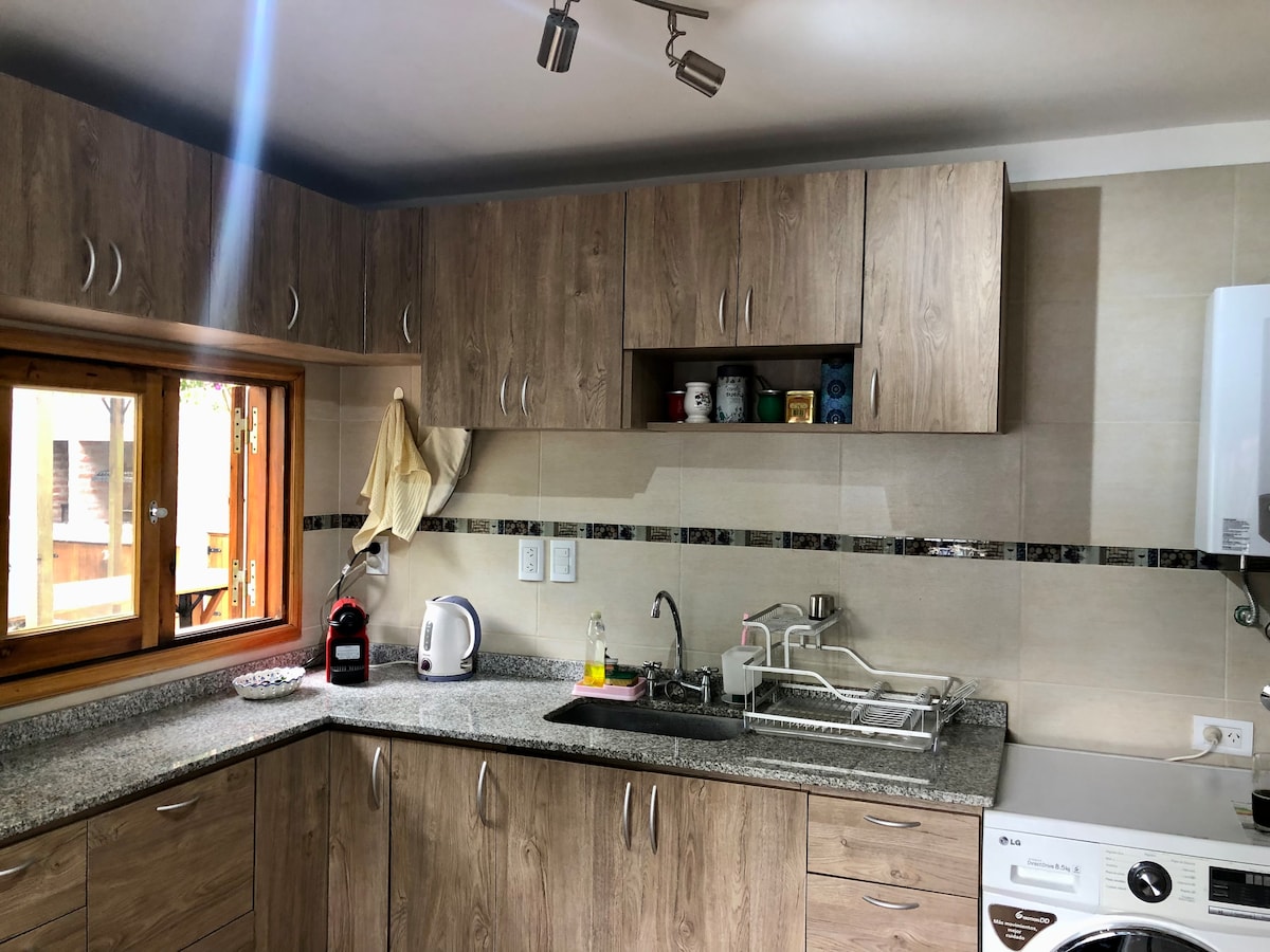 Відпочиньте всією сім 'єю в цьому просторому й тихому помешканні. Будинок з двома спальнями за 2 квартали від пляжу та за 5 кварталів від центру міста (Північна зона). Для 6 осіб, з великою кухнею, обладнаною плитою з 6 конфорками та духовкою з вогнетривкої цегли, а також повним комплектом посуду. Тут також є галерея, де можна насолоджуватися мате вранці, і лісистий сад із грилем і столом під перголою, де можна насолоджуватися вдень, просто за рогом від пляжу. Вхід для автомобіля.
