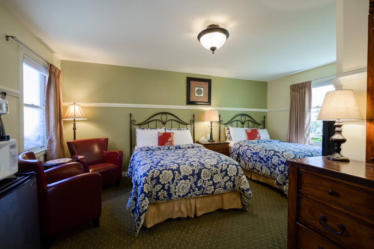 Ця красиво обладнана кімната виходить на наш заповнений квітами двір 🌸 і має два дуже довгі двоспальні ліжка 🛏️🛏️ (до розміру «queen-size»). Розташоване в невеликому сімейному мотелі в районі Марина, недалеко 🏙️ від магазинів і ресторанів Кау-Холлоу та Честнат-стріт. Насолоджуйтеся пішохідним районом і затишним перебуванням. 🚗 Безкоштовна парковка за наявності вільних дат - перевірте на стійці реєстрації. 🐾 Не можна перебувати з домашніми тваринами. 👥 Максимальна кількість гостей: 4 гостя. З нетерпінням чекаємо на ваш приїзд! 😊