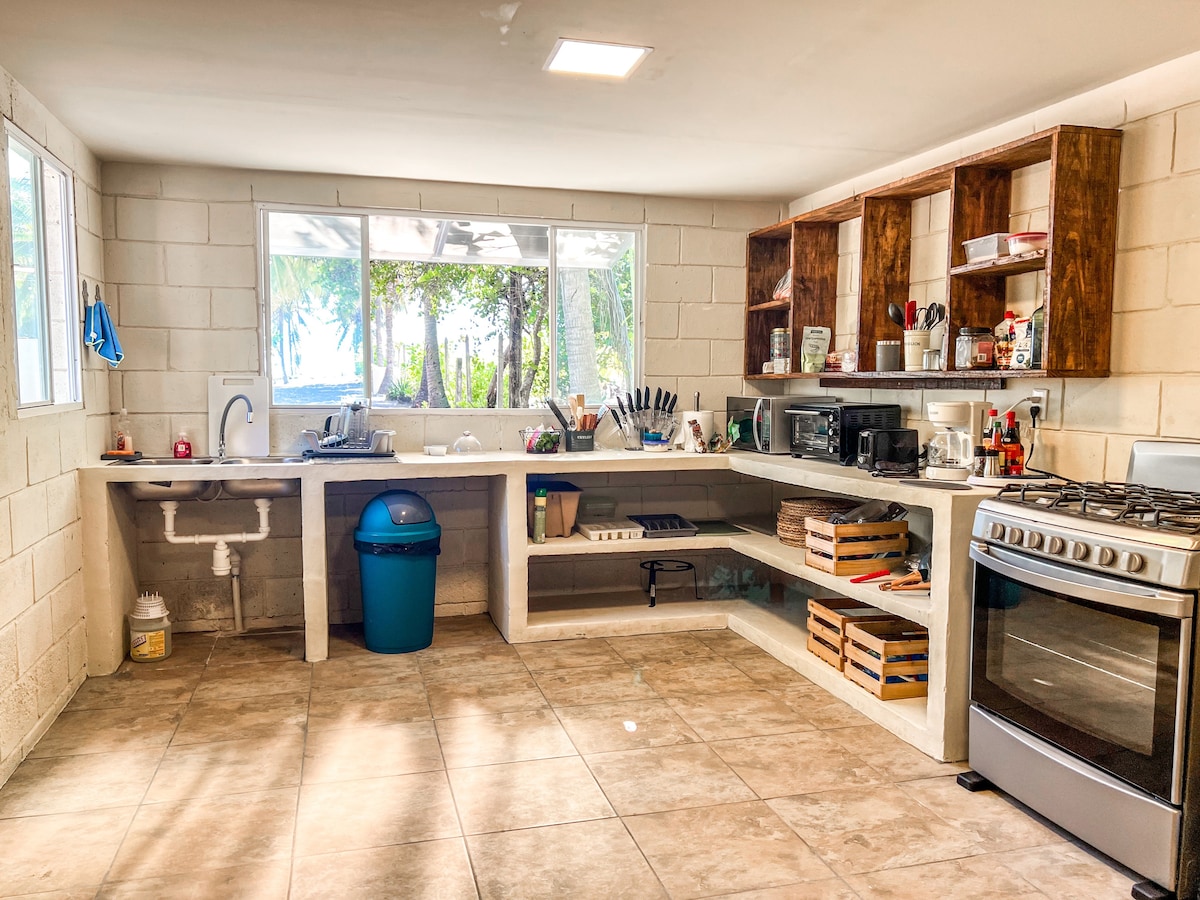 This luxurious private and secluded beach-front paradise hosts 15 guests with 3 large bedrooms and 1 service/staff bedroom, separate from the main house (or up to 20 guests with 6 bedrooms, ASK ME ABOUT IT) Walk from the front door to the quiet, private, and beautiful sandy beach! A large 2 area pool with a bar, a large outdoor area with BBQ, & hammocks. Large guest rooms, each with a bathroom (1 with hot water), AC & ceiling fans, and hotel-quality beds. ALL ON THE FIRST FLOOR! ❤️