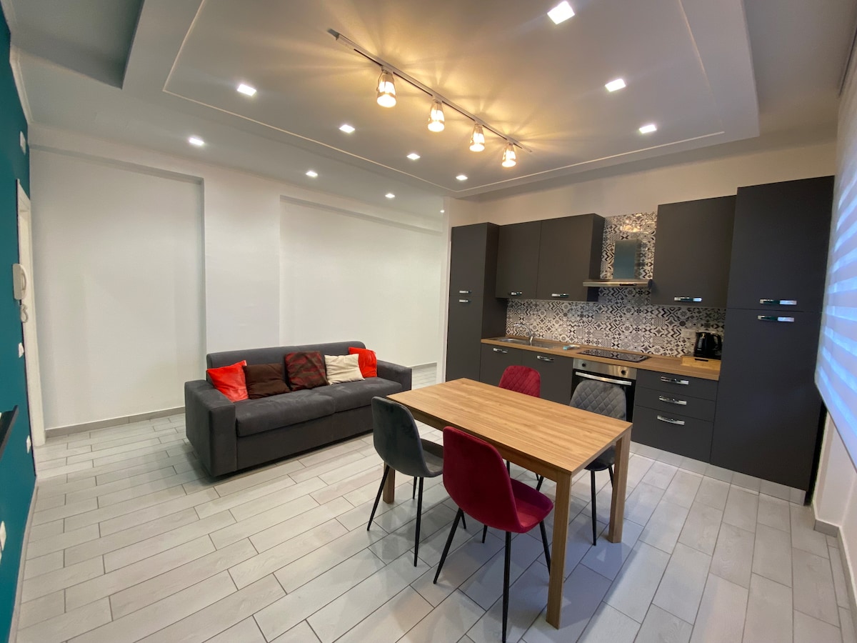 Розкішна квартира: поєднання класичної елегантності та сучасності, щойно відремонтована з джакузі та приватним дахом площею 90 кв. м, де можна помилуватися вулканом Везувій. Розташована в історичній будівлі на 3-му поверсі без ліфта в центрі старого міста, до всього можна дістатися пішки. Wi-Fi, PrimeVideo, Nespresso та БЕЗКОШТОВНЕ зберігання багажу Цікаві місця • 2 хвилини до Дуомо • 4 хв до метро Неаполя • 6 хвилин на метро L1 та L2 • 5 хвилин на залізничному вокзалі • 10 хв гавань