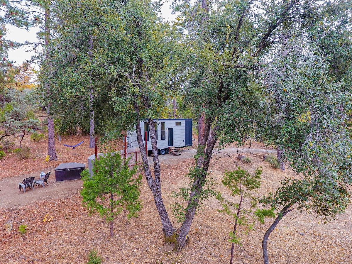 Forest's Embrace: Your Tiny Home Haven Escape the ordinary and immerse yourself in nature's tranquility. Our cozy tiny home, nestled amidst towering pines, offers a serene retreat just moments away from the pristine shores of Bass Lake and the awe-inspiring beauty of Yosemite National Park. Private Hot Tub: Soak your cares away under the starlit sky. Outdoor Kitchen: Grill up a gourmet meal and dine al fresco. Bass Lake: Enjoy boating, fishing, and swimming just minutes away.