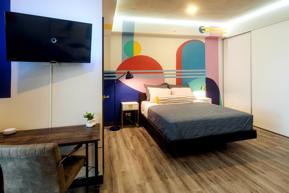 Зберігайте простий у цьому спокійному та центральному місці. Відчуйте ексклюзивність цієї сучасної студії в Барріо-Ескаланте, з неперевершеним розташуванням всього в декількох хвилинах ходьби від центру Сан-Хосе, в 30 хвилинах від аеропорту Тобіас Боланьос. Насолоджуйтеся перебуванням в оточенні розумних зручностей і прекрасним видом на місто з Wi-Fi, повнорозмірним ліжком, окремою ванною кімнатою, кухнею та доступом до чудових зручностей, таких як дах з джакузі та терасою, вітальня, тренажерний зал і зона для барбекю.