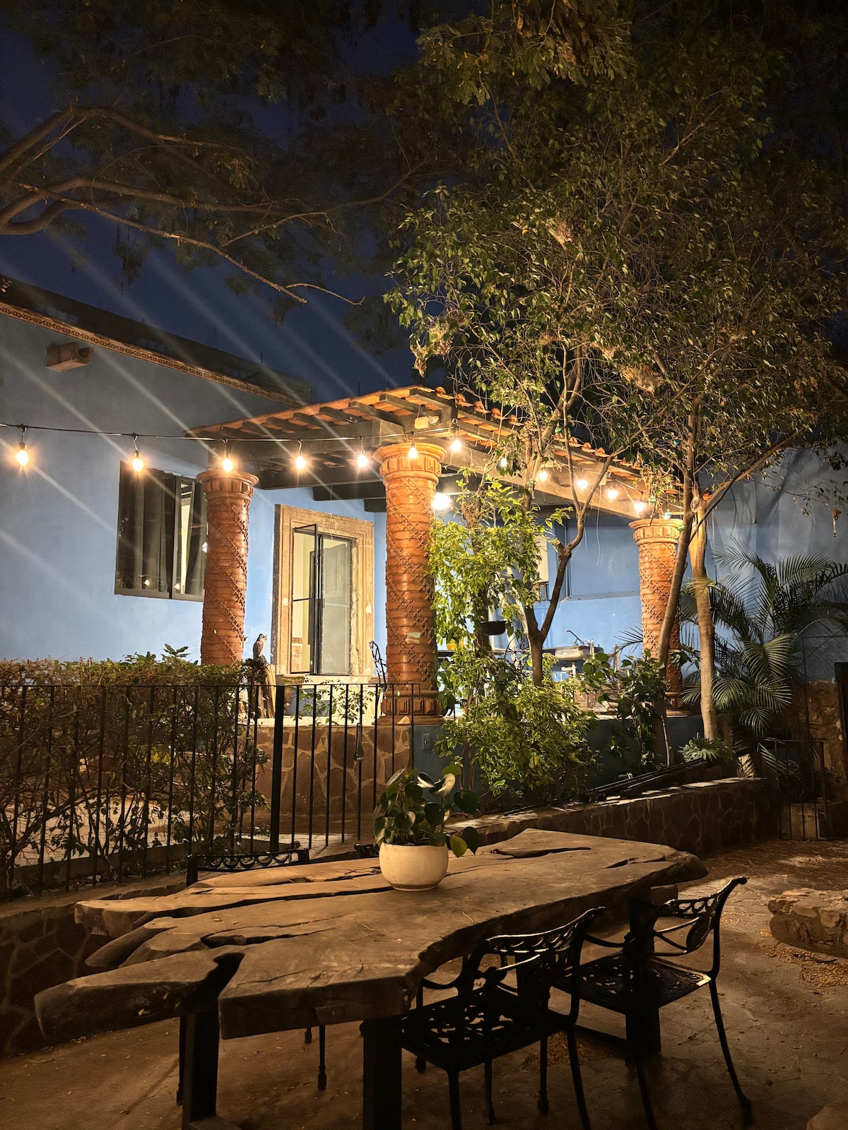 Розташована в історичному центрі Гуанахуато, ви отримаєте чудове перебування в комфортній та чарівній квартирі. Маленький сад із лимонним деревом, що цвіте цілий рік. Екологічно налаштовані сонячні водонагрівачі та цистерна для дощової води. Тераса з приголомшливим краєвидом, кушетка та гамак. Усього в декількох хвилинах від Університету G, площі Баратільо, театру Хуареса та Jardín Union. Рідко в Гуанахуато - спальні з кондиціонером! Гостям має бути комфортно ходити, підніматися в гору та підніматися сходами!