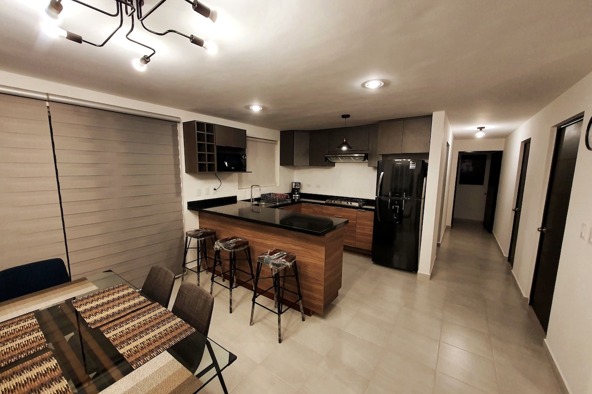 Насолоджуйтеся візитом до Керетаро в супер мебльованій квартирі, дуже комфортній завдяки великим просторам. Вітальня, їдальня. 2 спальні. 1 ліжко KS, 1 килимок і 1 диван-ліжко. Вентилятори. Обладнана кухня. 2 ванні кімнати з туалетом. Wi-Fi. Кабельне телебачення. Звукова панель BT у Салі. Алекса. Посудомийна машина. Балкон зі столом та стільцями на 2 особи. Паркування 2 автомобілів. Цілодобове спостереження в закритому кондомініумі. Інтелектуальний електронний замок. Плаза Антеа та Аптаун (8 хв. 15 хвилин від центру міста. 25 хвилин з аеропорту.
