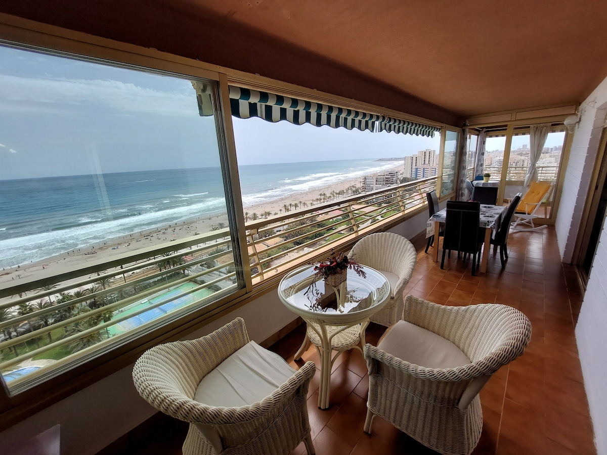 Красива квартира на березі моря (прямий вихід до моря) з неперевершеним видом на Середземне море. Ідеально підходить для пар і сімей з дітьми. Вечірки та шум заборонені. Доступно для тривалого перебування. Зв 'яжіться з нами. Район з' єднаний громадським транспортом: трамваєм та автобусами з центром міста. Усі послуги: ресторани, супермаркети, аптека. З передньої тераси відкривається приголомшливий вид на замок Санта-Барбара, де можна відпочити, спостерігаючи за хвилями моря