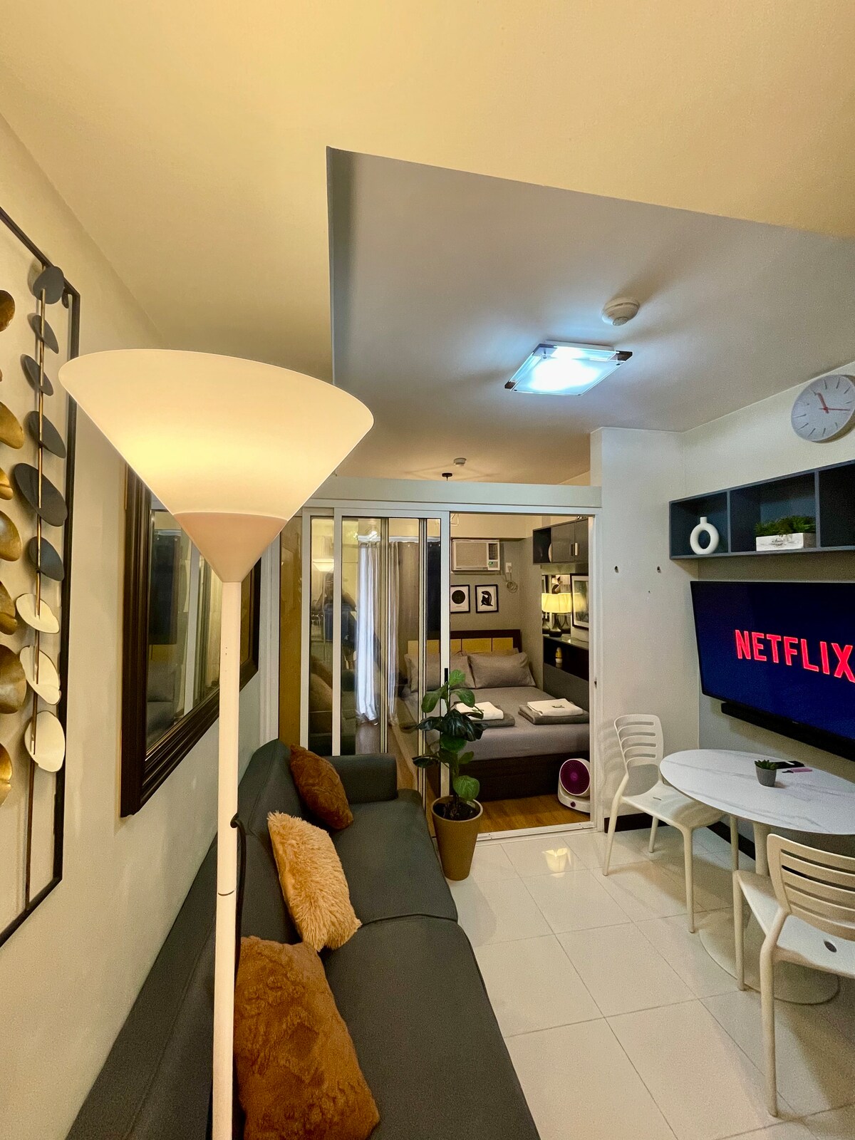 Ласкаво просимо до вашого люкса, розташованого в жвавому розважальному центрі Томаса Морато, Кезон-Сіті! Відкрийте для себе модні кафе, насолоджуйтеся місцевою кухнею або просто відпочиньте після довгого дня, переглядаючи фільми на Disney+ і Netflix у затишку вашого люкса. Насолоджуйтеся продуманою студією з теплими інтер’єрами, природним освітленням і комфортом у готельному стилі. Незалежно від того, чи ви тут для бізнесу, дозвілля або романтичних вихідних, це помешкання – як вдома, ідеально підходить для відпочинку та відновлення сил.