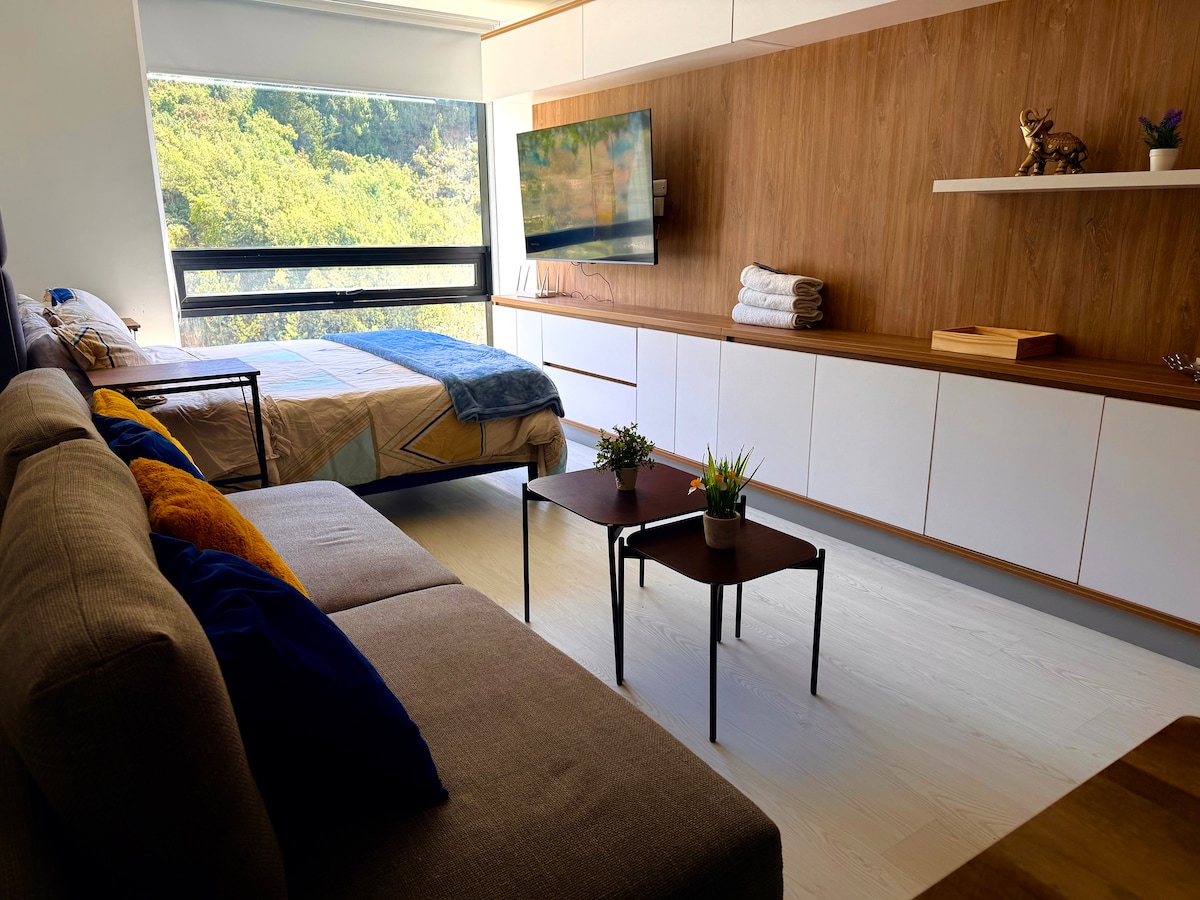 Bienvenido a tu espacio en Bogotá, donde la comodidad y la vista se combinan para ofrecerte una experiencia inolvidable. Este acogedor espacio de un solo ambiente está diseñado para brindarte todo lo que necesitas durante tu estancia. Cuenta con una cocina equipada con nevera, horno y estufa, perfecta para preparar tus comidas favoritas. Además, tendrás a tu disposición una lavadora y secadora Hay otro apartamento igual en el mismo edificio en caso que vengas con más personas