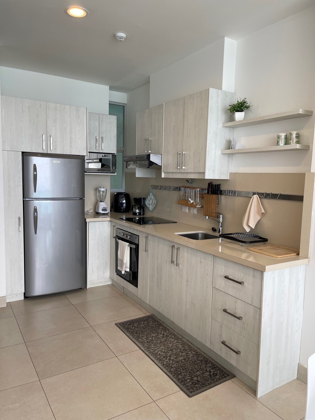 Тут ви знайдете неймовірний вид на пляж, басейн, джакузі, сауну, фітнес-зал, гриль-зону і, звичайно, гостинний будинок! (Зручності є спільними для всіх гостей будівлі, домашні тварини не допускаються) Ця сучасна та чарівна квартира знаходиться всього в декількох кроках від пляжу. Розташоване в Сан-Лоренцо, Салінас. У 5 хвилинах ходьби від супермаркетів і магазинів, а також ресторанів і пляжних клубів. Красивий вид на океан з вітальні та тераси. У нас є власний генератор - немає відключень електроенергії!!