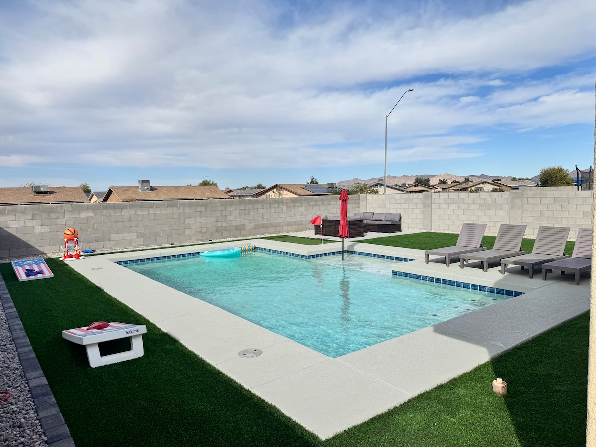 Відпочиньте й розслабтеся в затишній і стильній оселі. Цей абсолютно новий сучасний будинок дивовижний !! з ігровим басейном на задньому подвір 'ї та грилем, щоб насолодитися смачним смаженням!! меблі надзвичайно зручні, і 85-дюймовим телевізором у вітальні, щоб побачити ваші улюблені фільми ! розташований поблизу Юми та кордону . Поруч невідкладна допомога , заправка, тренажерний зал, супермаркет і ресторани .