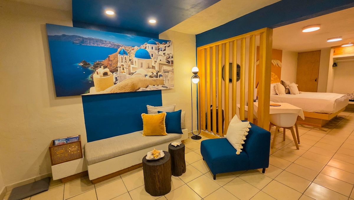 Наша квартира розташована всього в 1 кварталі від поромного терміналу та моря, має власну кухню, Wi-Fi, Netflix, власну ванну кімнату та чудовий задній двір, спільний з іншою квартирою. Упомешканні є лише ці дві квартири. Інтер 'єр - це мексиканський сучасний дизайн із меблями місцевих художників, тому він досить барвистий і в той же час розслабляється.