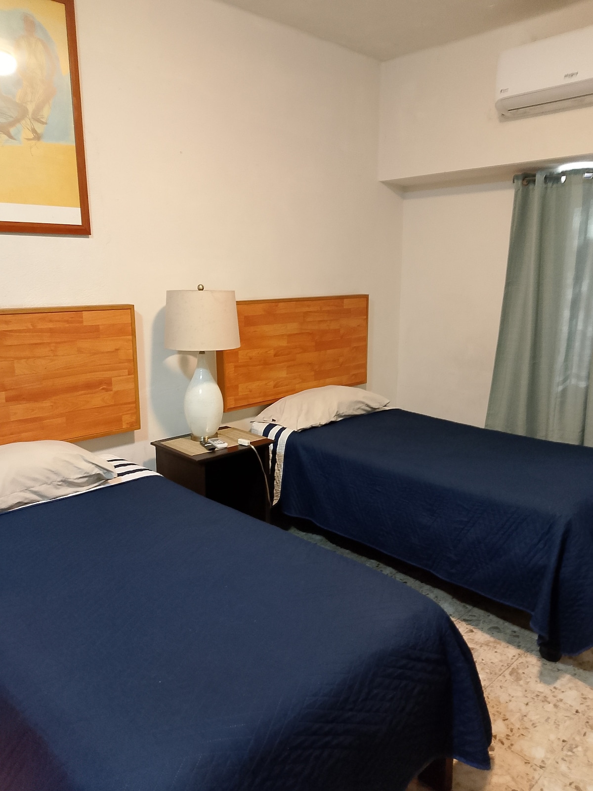 Departamento entero, en recámara tiene cama King Size y 2 sofá cama, aire acondicionado frio/calor, TV, closet y cajoneras. Además, tiene exclusivamente para ti: sala con 2 sofá cama, baño completo, barra comedor, cocina (con refri, estufa, micro ondas, horno, cafetera, nutribullet, sartenes, platos, etc.) Wi-fi rápido de 80MB, TV en sala.