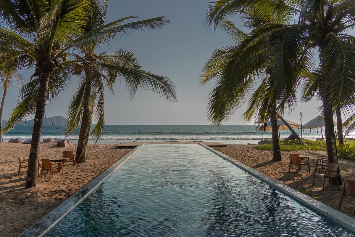 Добрий день! Запрошую вас на незабутні вихідні в моєму будинку біля пляжу, розташованому на прекрасному веселому узбережжі Халіско. Насолоджуйтеся нашим ексклюзивним помешканням, яке має 6 затишних бунгало, у кожному з яких є: - Приватний банкінг - телевізор для розваг; - Обладнана кухня - Холодильник. - Безкоштовний Wi-Fi.