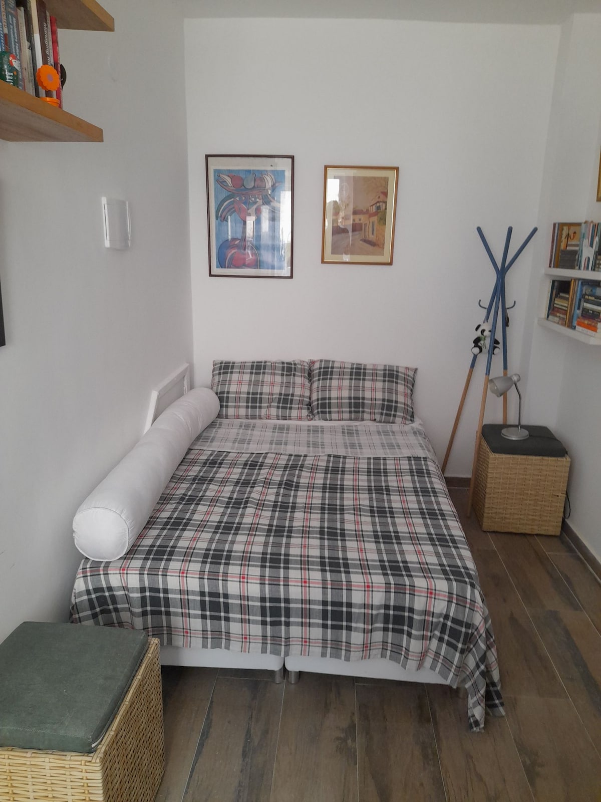 Ціле помешкання. Квартира простора, затишна, організована, добре провітрювана та світла, з ранковим сонцем. У спальні є ліжко розміру queen size (матрац суперпреміум євро) та простора шафа. Велика вітальня з обіднім столом, диваном-ліжком (двоспальним) та балконом з рослинами та гамаком. Кухня укомплектована, обладнана всім необхідним посудом. Ванну кімнату відремонтували, і в ній є душ на 220 В. У кімнаті є кондиціонер, стельовий вентилятор і портативний підлоговий вентилятор.